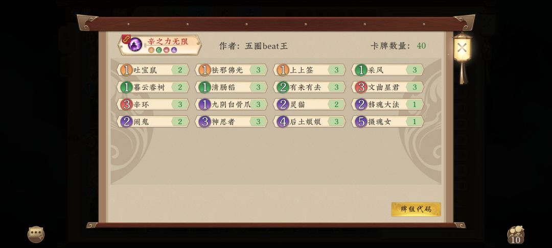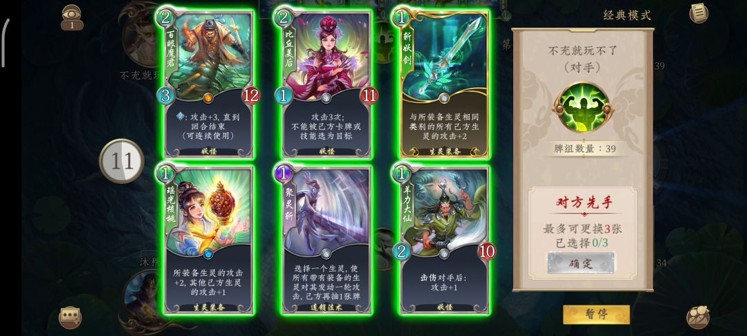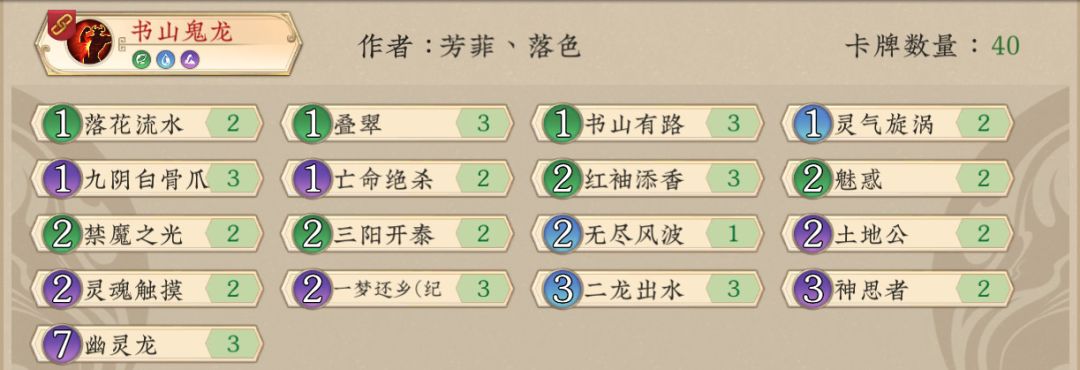 今天直播的时候开发了一下这次更新的新卡卡组 目前有了几个成果 所以来论坛分享一下 (以下按测试顺序放卡组) 第一套:鬼龙一刀 新卡书山有路的出现直接使得鬼龙一刀有了前途 书山有路不但提高了斩杀线,而且更为轻巧灵活 并且可以充分的取代诛仙剑的位置 使得在构筑时 可以进一步腾出跳费牌的位置 并选择三阳作为跳费手段 采用土地公+亡命双重弃鬼龙的手段提高稳定性 总体而言大概是能打到80分左右的otk卡组 表