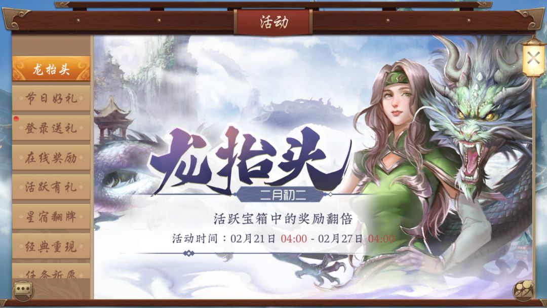 各位亲爱的老爷们: 大家好!我们将于02月20日 15:00进行临时停服更新,由此带来的不便还请谅解。对您带来的不便我们深表歉意,为此我们为大家准备了维护礼包,请在维护结束后查看邮件获取。 更新时间:02月20日 15:00 -15:30 更新类型:iOS、安卓版本停服更新,玩家开服后在游戏内自动下载更新补丁。 更新补偿:仙币*1500 更新公告: 1、龙抬头活动将于2023年02月21