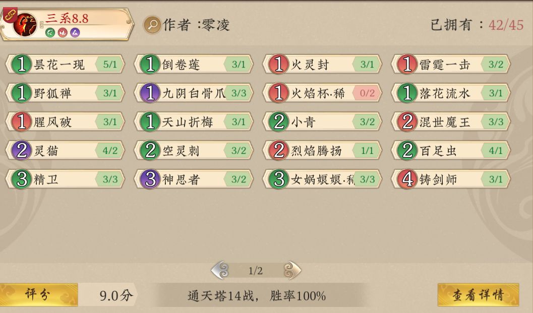 自从女神们改8费以后一梦还乡拉教主有一半概率教主留场,4费出9费大爹毁天灭地。8月月报说水土通天只有7%左右,可观战频道哪次不是一大堆??? 目前版本比较平衡,1★代表的差距不大,上月Pressure用天宫结算尊1,非常励志。 有一些强度中等的卡组没有列出 火木混火 ★★★★★ 零陵的登顶版本比其他版本更全面,几乎无懈可击。 女娲+燕赤霞卡死一批法术和高修卡组,木系有低费火系有高费配合良好,土系提