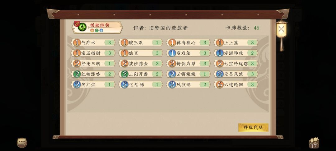 ★娱乐卡组 ★★较弱卡组 ★★★较强卡组 ★★★★极强卡组 1.宅妖抽牌 ★★★ 极速抽牌刷超高攻击的宅妖。时隔三年,万物逢春使这个的卡组得到了巨大的加强,宅妖卡组正需要这种强力的过牌。虽然携带了五仙汤,但这并不是个熬汤卡组,完全不依赖汤,只是正好携带了不少3费法术,五仙汤可以让过牌更流畅。因缘也算抽牌,可以触发宅妖。 2.祖龙一刀 ★★★ 的因缘信otk的最新版强度得到了极大提升,组件数量减少并