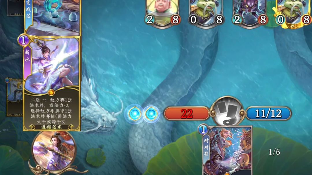 不是哥们,我就换个门派,元神他换人玩了?(元神:也就是我金刚经沉底了[表情_翻白眼])你说一个水系门派,有过牌有单解就算了,还有直伤,场面也苟得住,玩毛? 过牌不是问题,装备法术偏向拿解场,生灵拿低费苟住就行。初始卡组的千里眼、鹤道人可删,顺风耳和乱环诀丢有威胁的牌,偶尔能丢到装备,其他配合卡: ▶如影随形:给对面用2费打6抽4,对面没怪就修或者给自己乌龟顺风耳用,也不亏 ▶梦幻泡影/耳中人:打