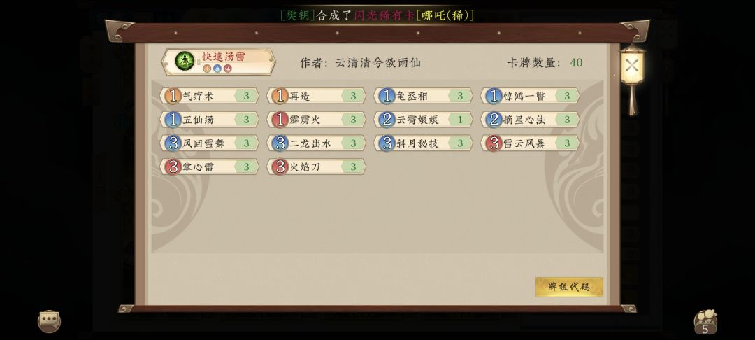 别抄封面这套,输了别怪我。 这套卡组的思路来自于本次更新试用卡后,通天以北欧和零凌为首的一帮巨(yin)佬(bi)开始尝试将镇元加入水木体系。 初期主要有两种,一种是以北欧为例的以原有的水木大海体系进行修改是神木林水木;另一种是以零凌为例的凌云岛水木,更像之前的火木偷天。 我一开始并没有意识到镇元的强度,因为本月月初沉迷盘丝金,童虎一上谁也不爱,打了两三次直接摁死了进场确实没什么亮点。而零凌的凌云