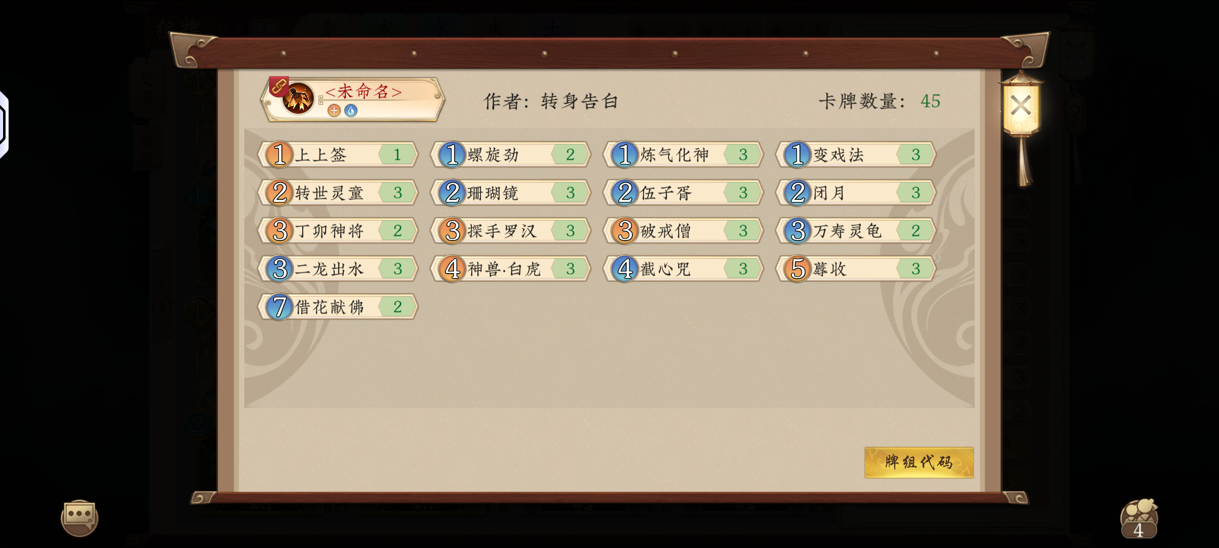 分享三套最近有在玩的娱乐套 第一套纯娱乐毫无强度,但是赢一把会很快乐,基本上就是靠南柯一梦、沉思罗汉、追梦去拿修炼资源,太白不断修炼稳住局面,祈求到好用的法术就留着,没用的直接修,最后靠雷云斩杀。顺带一提南柯一梦真爽啊,太白睡全场南柯一梦复制满了比心[表情_比心] 第二套天宫,是我用的还挺顺手的一套,遇到金木快基本能稳吃,当然应对信卡组没太好办法。胜率也还可以,差不多有六七十,可能是当时打的环境问