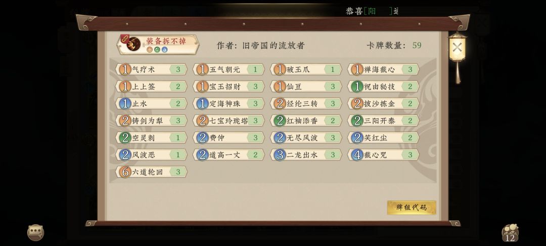 改版破魔镜可以防住绝大部分法术 搭配碎羽祭基本防御住了掀桌,核心生物,装备 再由黑风怪负责回收♻️ 原本思路是三系天书,用异人灵玉快速跳费替代水系赚卡差(因为水系鱼龙变和🦐将刚削弱) 结果:不行,那帮上尊的老六半夜只玩攻穿透和快攻,牌组太厚根本防不住,最近玩水土的又放天魔解体了 所以把思路放出来,看看🈶没🈶🉐白嫖