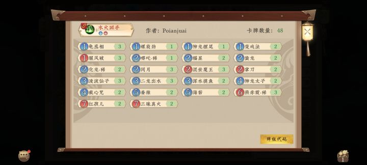 已经努力控住了,可惜还是没打过。(虽然我打的有点失误)[表情_泪目] 自己尝试了一下这套卡组,一般5修场上有孙悟空,手里捏着截心两回合就能取胜,就算对面努力铺满场,一个孔宣也可以清场[表情_举手] 针对卡:草忘忧加白虎加超度[表情_斜眼笑] 赶紧开发一套,三生杯打他个措手不及[表情_送花]