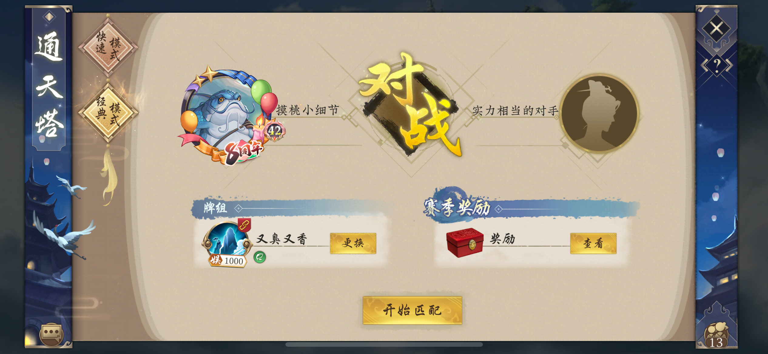 通天塔仅统计上过天尊的玩家对局。仙魔道场
