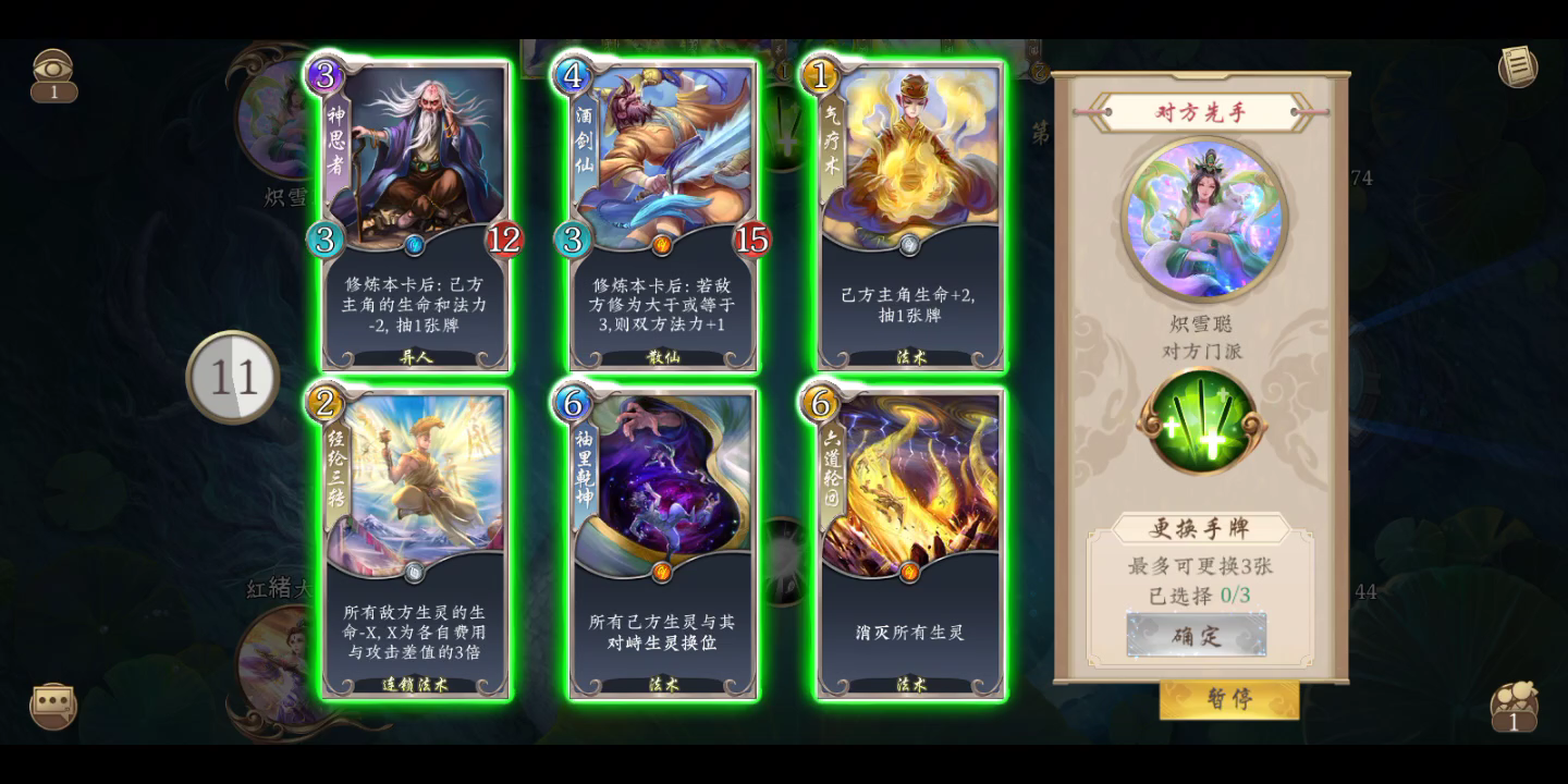 一度想放弃,没想到赢了。中间有个失误,不该用燕赤霞对招魂姥姥,但没这个失误我也许就不会用神龙太子回手燕赤霞,说不定反而输了。最后对面那波不管对面怎样都输了,他要么消灭笛仙留出空位,要么消灭其他生灵衍生笛仙,我鱼皇换位再上铸剑师杀笛仙都是赢。