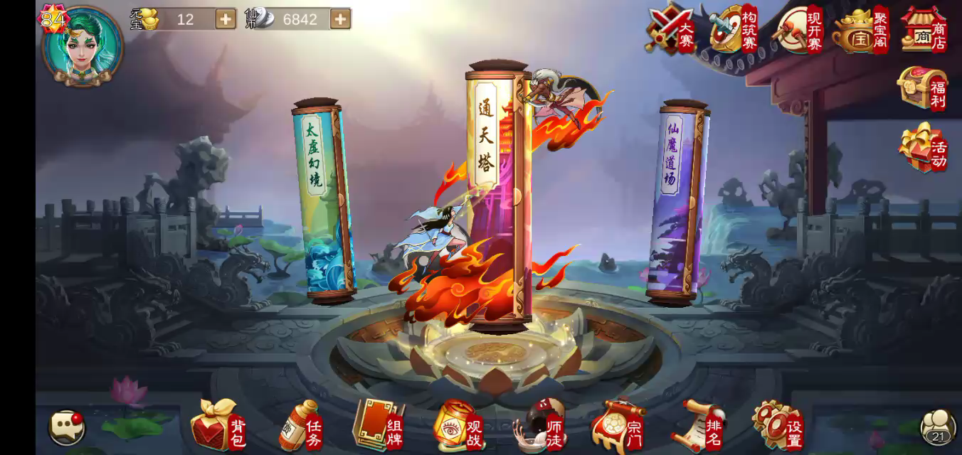 打法思路邪神塔过牌,笛子衍生逍遥,催命杀怪,添加新版遁甲天师提高伤害,正常情况下催命两白无常对拉,对面一回合死一个怪,我方免费一回合衍生一逍遥笛仙,龙王防法术,闹鬼可以闹乌龟、白无常拿牌或者闹龙王防法术,加入无尽风波装备被拆还能拿回来😜