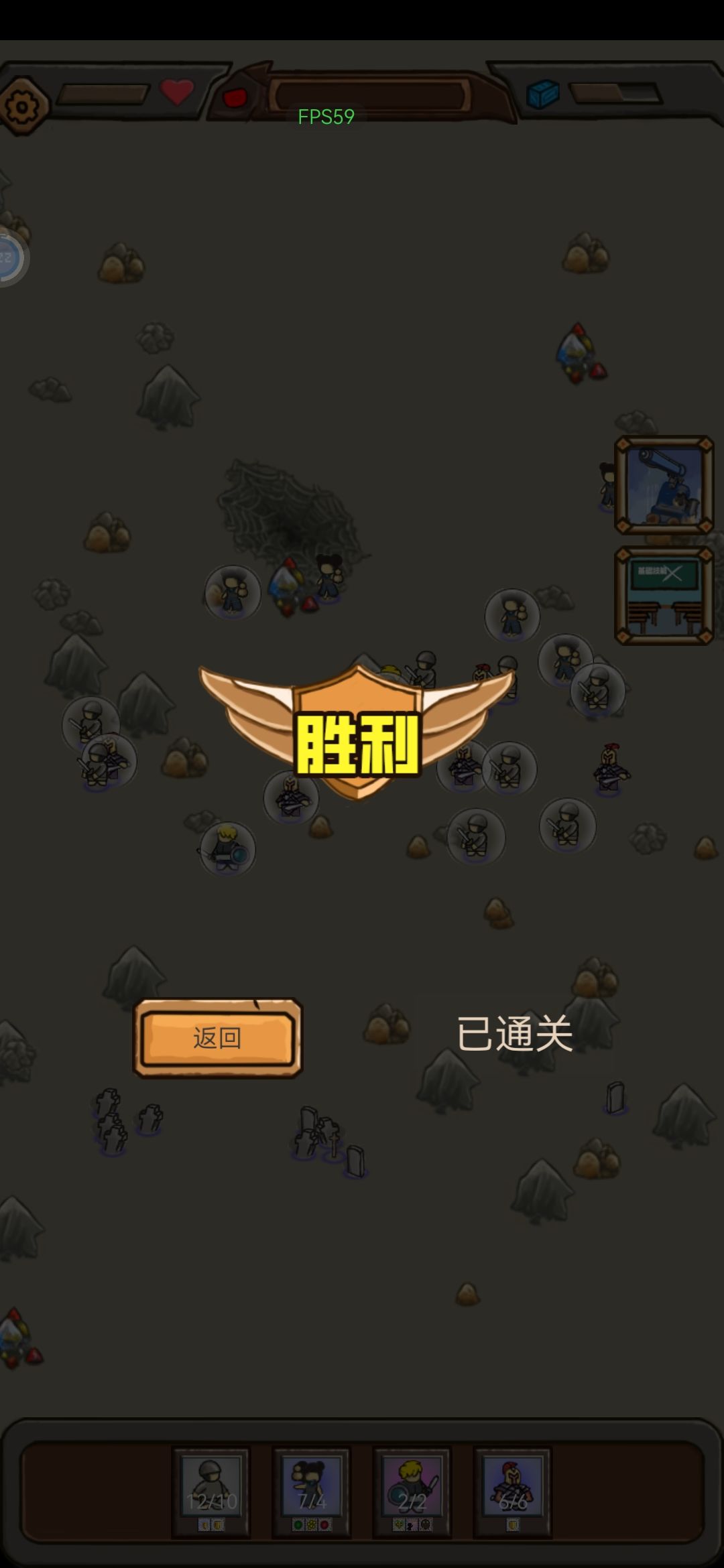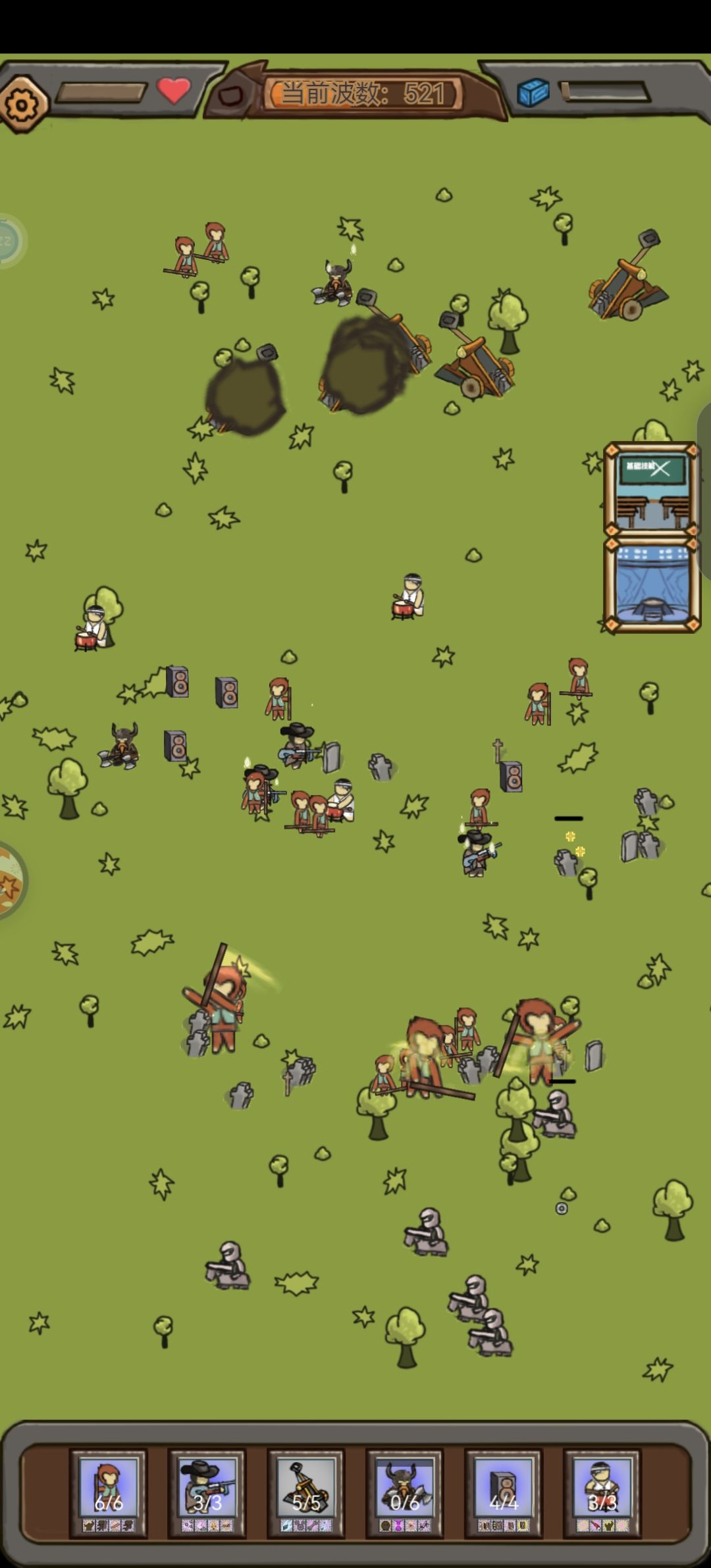 前期优先升级投石车,初始战士抗伤害弓箭手补伤害,中期黑鸦打辅助,后期牧师和勇者进行复活和快速招募,只要怪不能把投石车给拆掉就能无限续航