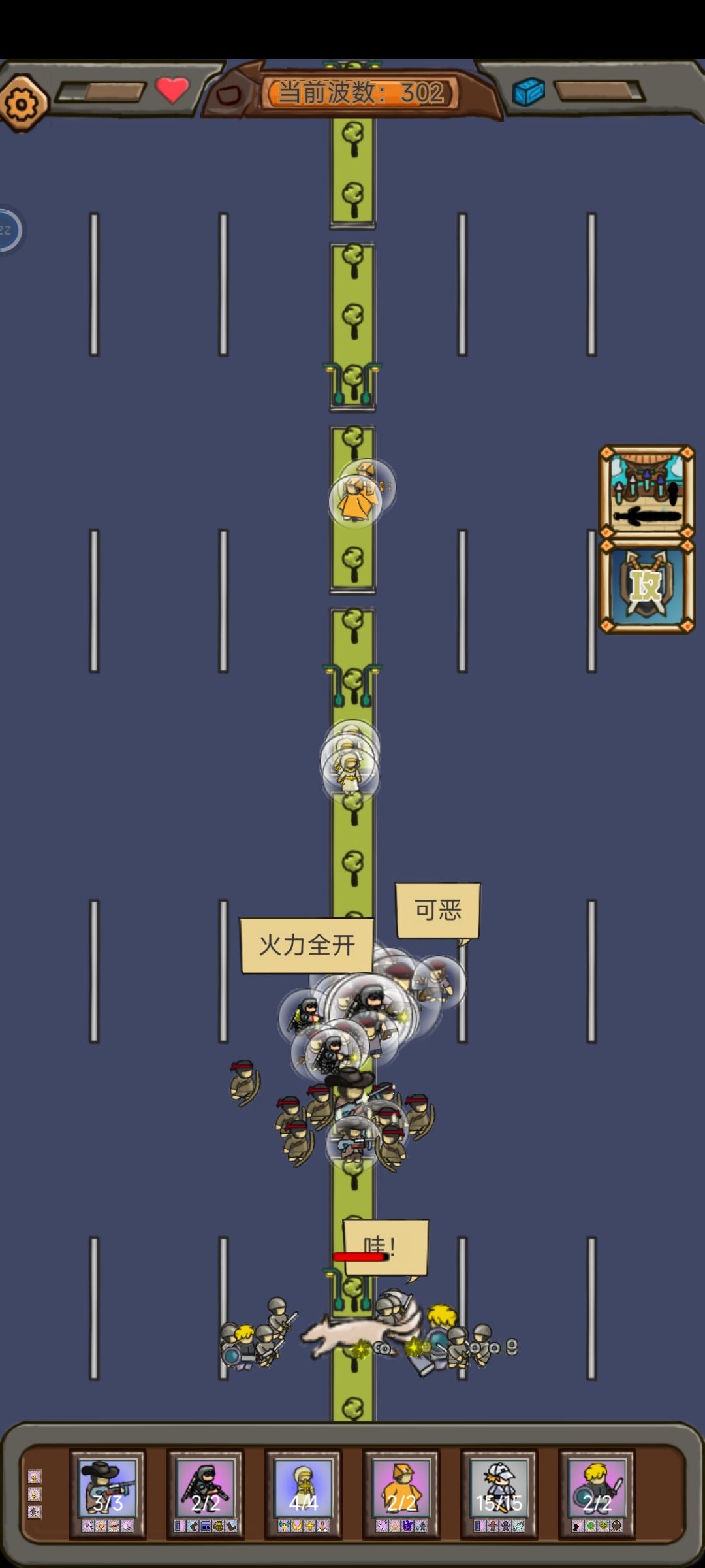 这关我过了好久,我也不知道这个是不是好的配置,还有两个是奶妈,哈哈哈哈哈。 我感觉最开始还是弓箭手好用。牧师太脆不太适合这种关卡,而且发育特别慢。 我觉得最强的就是升级特种兵然后选棍子那个少年有10%的概率进化成特种兵。加上前排够用了。 爆兵的人海战术才是王道!!! 记得选择特种兵可以后撤,不然特种兵死了复活慢。