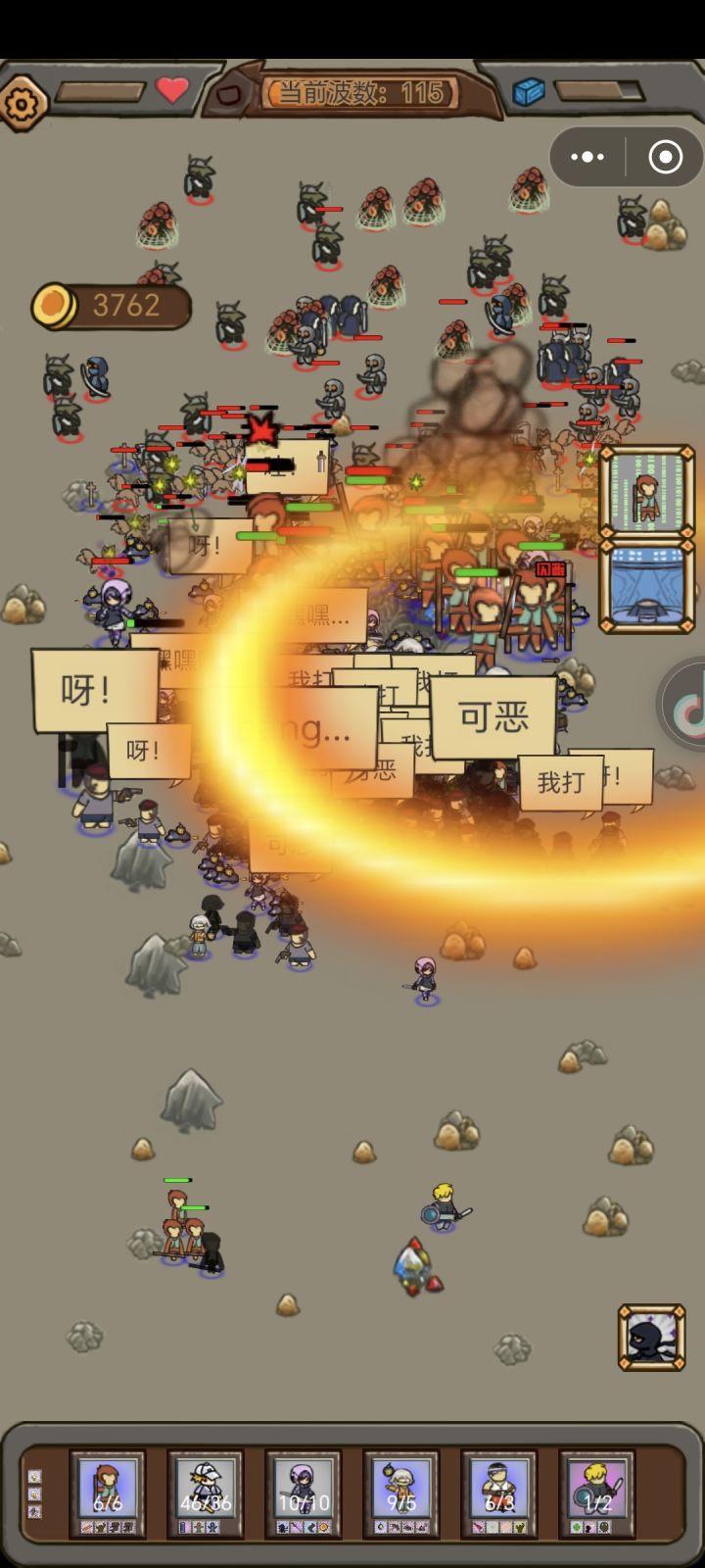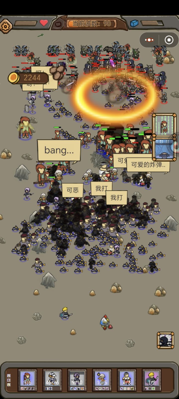 全靠奥数大师和自爆老鼠奥数大师的分裂魔法弹简直是清屏神器,只要拦住怪,来多少都是白给