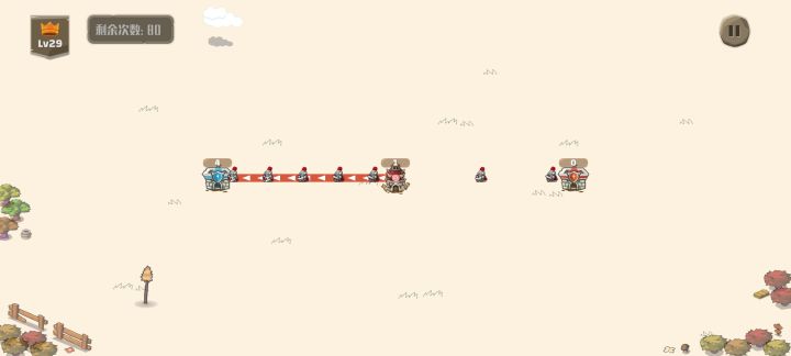 5小时,通关了😂以前玩过类似的。和那个比有优有劣。很不错。好处是操作方便,音乐还行。缺点就是玩法不太全,建议再出点关卡和城堡类型。比如单纯用于中转路线的普通城堡,或者随时间自动增加的初始无人占领的城堡,要不然永远都是后手欺负人机😏先手血亏。还有就是。。。后面节奏有点快了。紧张又刺激。。。。。箭塔感觉不错,炮塔太强了。。。建议改成不会增兵。😊