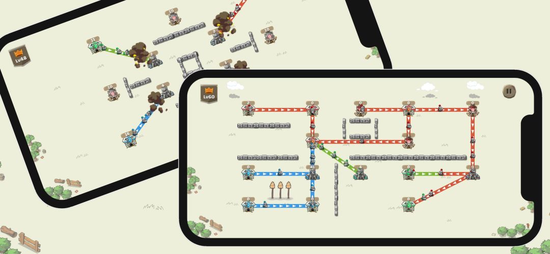 这是一款具备策略性,并且快节奏的有趣游戏。只要玩了几关以后,你就停不下来了。 虽然是策略性的游戏,但是手速也是挺重要的,在调配兵力走向的时候,需要快速滑动连线。 游戏前面几关比较简单,从第10关开始难度逐渐增加,玩家面临巨大的挑战,要知道敌人的智商并不低,尤其到后面的关卡更有意思,当你费劲全身力气获得胜利时候,你会感到十分的喜悦。 后期的敌人数量和城堡种类也会增加。目前一共64关,后续不断更新关卡