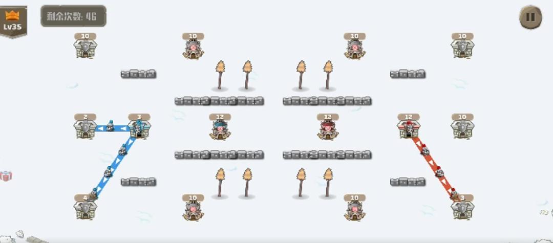 城堡突袭第35关过关视频 。这一关的技巧就是双方对对峙的时候,调走防御塔里的兵力,吸引敌人来打。然后消耗敌人总兵力,再反攻。
