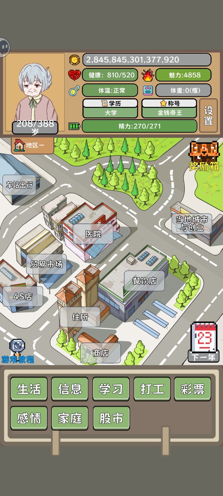 初始市场价格截图,然后低买高卖,信息不一定准,有时候没信息买卖也能赚钱,快速买车跑滴滴,不过跑滴也就前几年跑跑,有一定钱后商店精力全买,然后全精力读书,大型之后结婚,结婚每天150精力,有个几十亿之后可以搞学校,后期学校是最赚钱的,买卖已经bug了金额太大买不了,调小金额又浪费时间,全力搞教育就好了