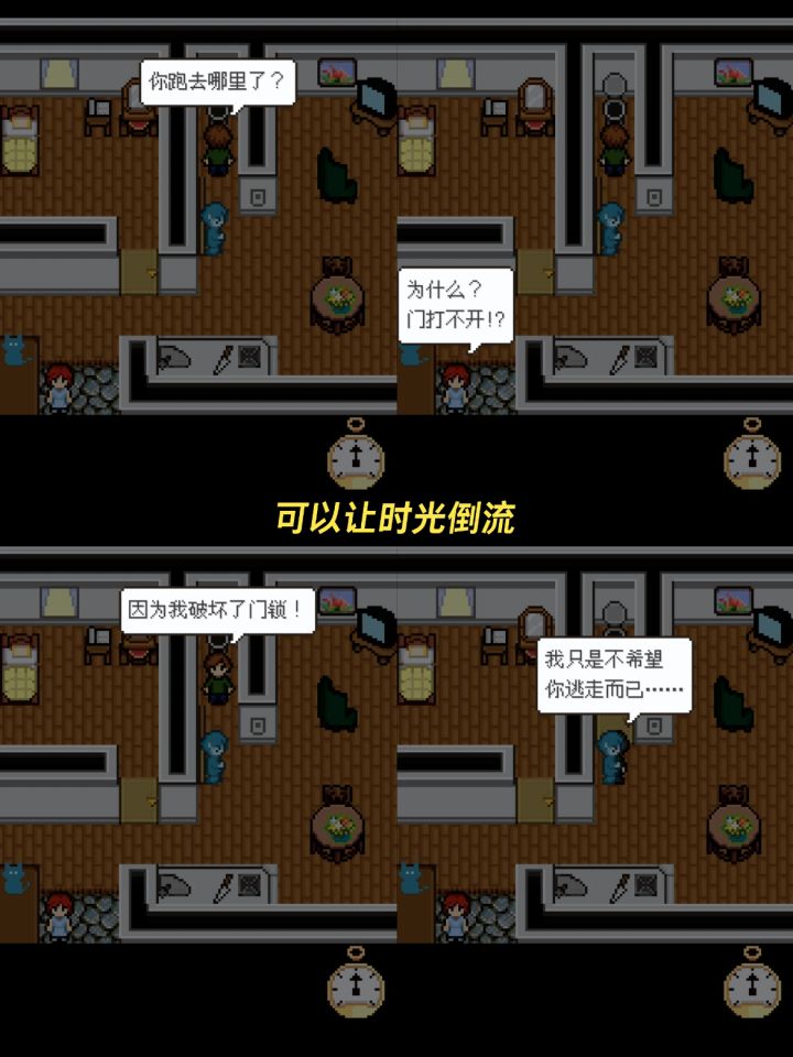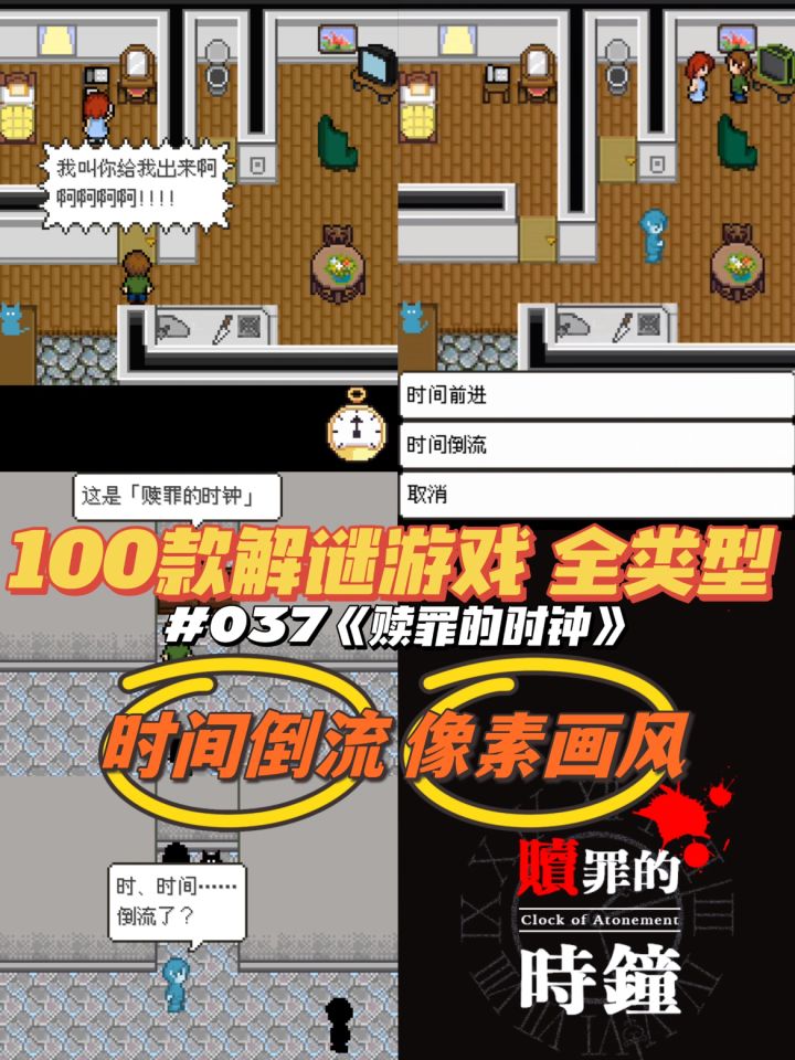 ✅游戏名:《赎罪的时钟》.✅平台:iOS外|Android.✅关键词:解谜游戏|像素画风|RPG|密室逃脱.这是一款像素风RPG解谜游戏,通过时间倒流与前进来改变剧情与结局。(欢迎大家观看女主的花式S法!)很上头很上头!.我将扮演一位因疯狂的爱情错鲨了蕞爱的女人的跟踪狂。就在我鲨了她不知所措的时候,一名神秘男子给了我一个不可思议的道具:【赎罪的时钟】🕰.通过改变时间和物