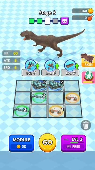Merge and equip your dinosaur to win over the enemies!