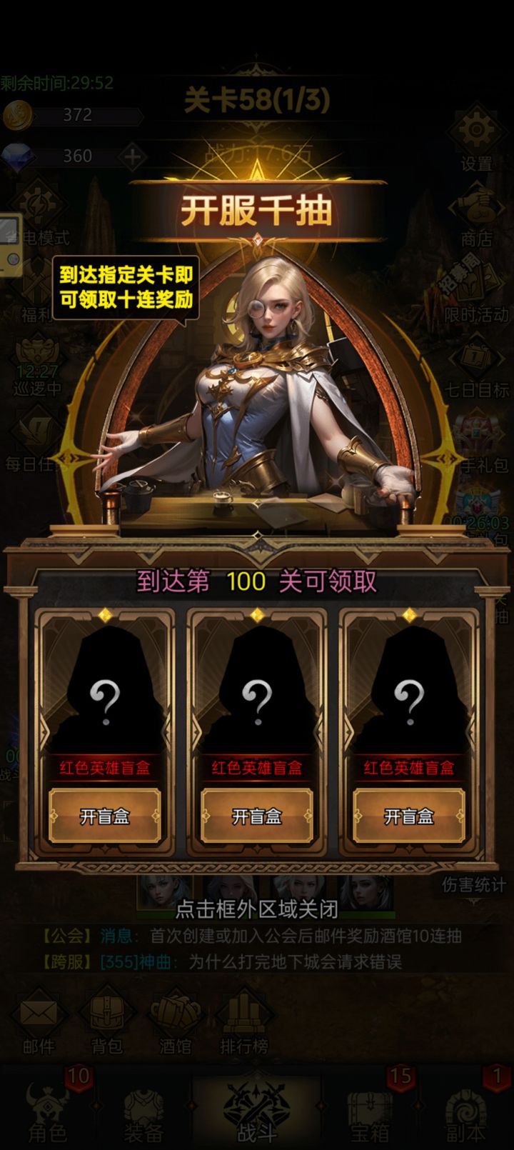玩不下去,充值窗口比他的活动还多。只有三个活动,一周一轮换。分别是宝箱周,酒杯周,钻石购物周。问题是这游戏酒杯只能靠打地下城给,层数高了就打不过。打不过怎么办呢?逼着你氪金提升战力。别的就不说了,人没几个,资源获取太慢。狗都不玩