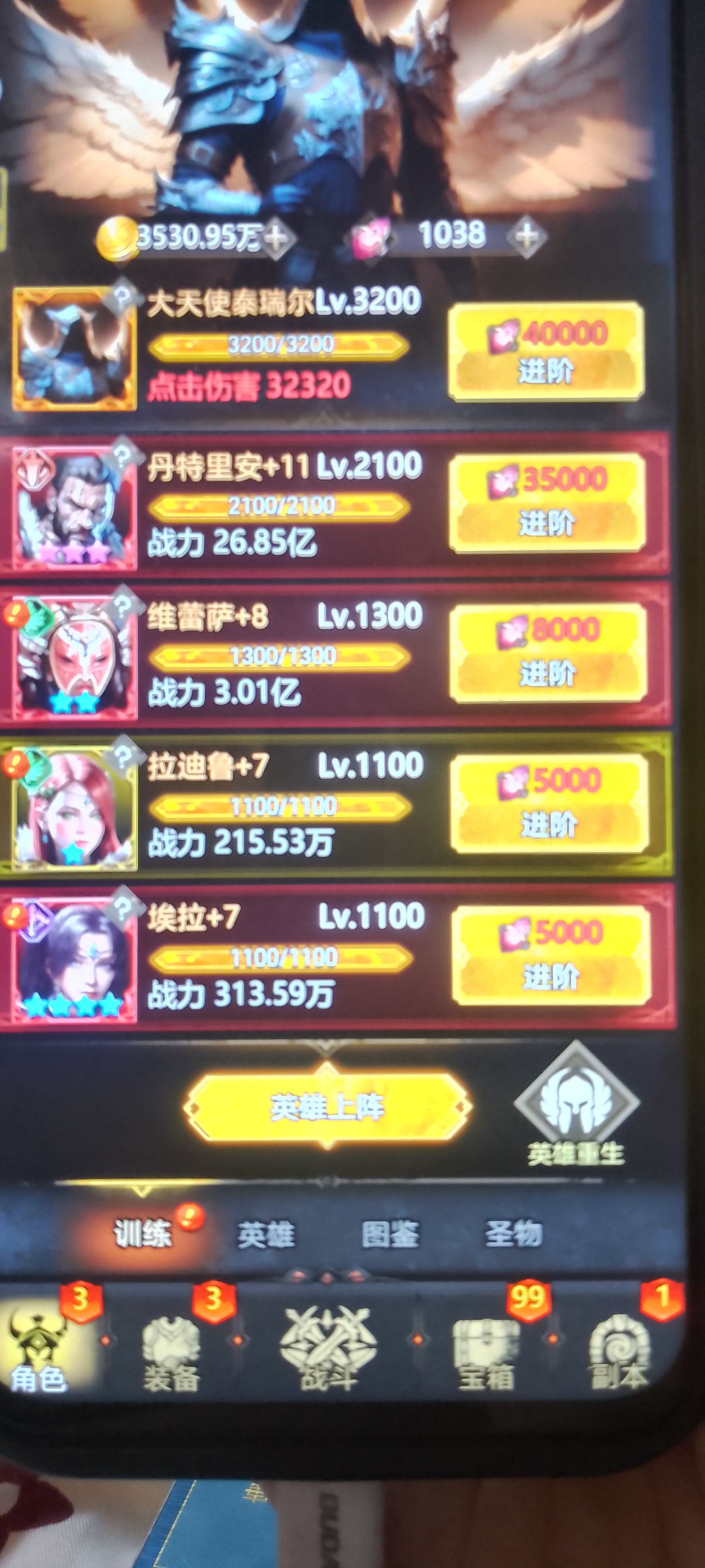 主力丹,所有资源都给他。推图选择这4个英雄,丹不要升级衣服,进图就能触发双倍攻击!等下发个视频