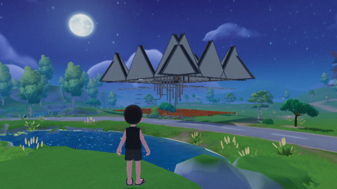 建造高度限制导致做不出想要的效果,只能这样实现一下了。 最高处的地板上面,只能再放一次物品,放一次墙板就无法放置屋顶,很难搞。xy轴在地图上受限可以理解,z轴就没必要限制,建议加高建造高度上限。 那就可以做出高低错落的建筑物,同时给花海上方留出足够的空间。 凑合看吧,差强人意。