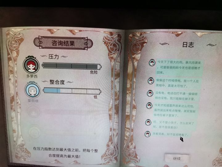 玩的过程中好几次想骂多萝西神经病啊😂emmm想了想好像人家本来就是多重人格好的结局..多萝西吃安眠药wuwu这个结局我至少刷出来了3次每次都是很绝望这是多萝西进了精神病院😂应该是没有和爱丽丝沟通好,