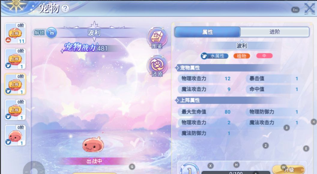 宠物分为稀有-史诗-传说,这个获得的概率是随机的. 获得后可以上阵,让其跟随角色身后,还可以进阶宠物,提高战力!玩法规则 1.玩家获得宠物后可在宠物界面进行升级、升阶、上阵。 2.升级可消耗宠物经验书和未锁定的宠物宠物经验书(小)和蓝品宠物增加150经验,宠物经验书(中)和紫品宠物增加2000经验,宠物经验书(大)和橙品宠物增加30000经验。 3.宠物升阶只能消耗同种类的宠物,蓝品升1-6阶消耗