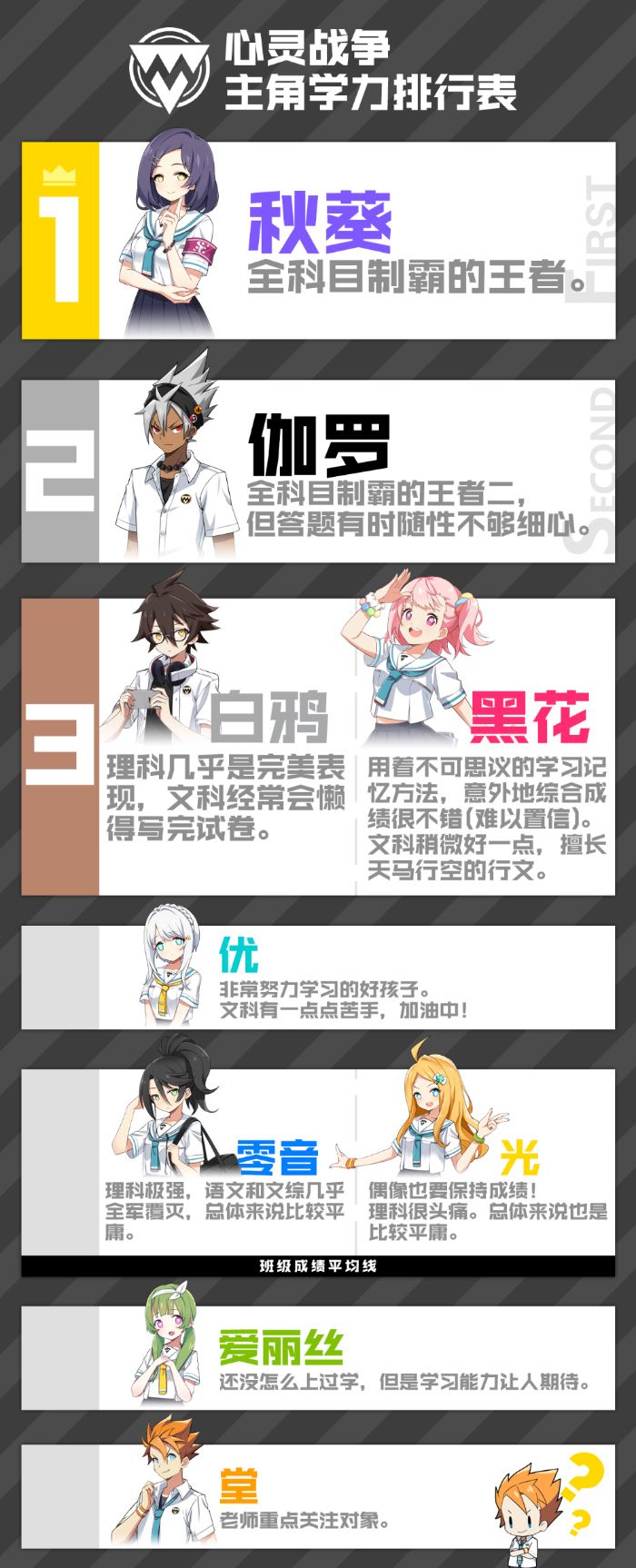 《心灵战争》主角学力排行表公布!