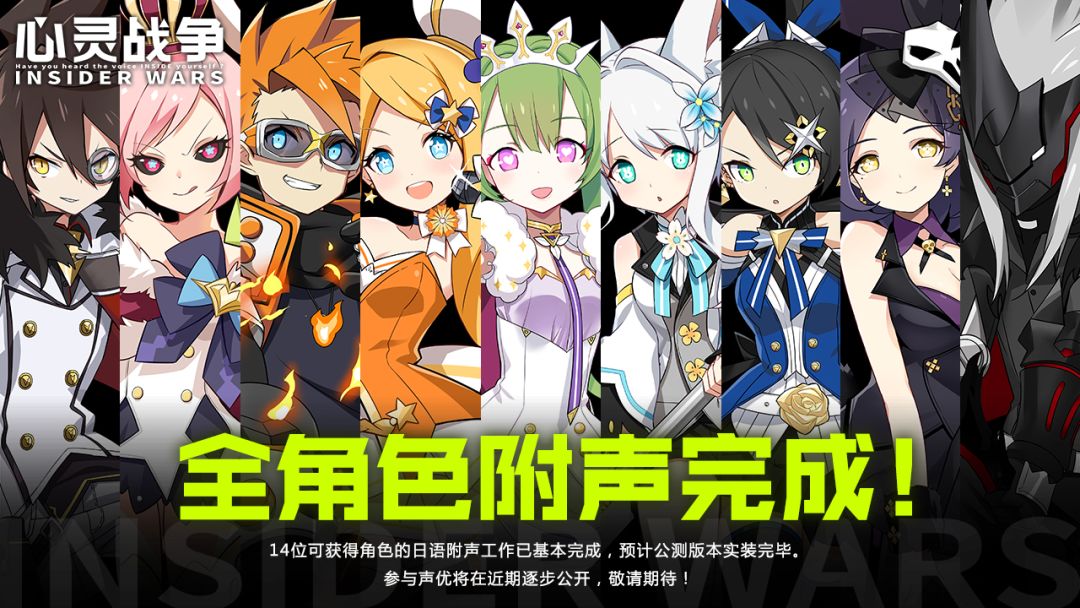 前方独家重磅情报高能预警!新闻社友情提示,请勿在饮水或进餐时阅读本篇内容! >>>>>>>>>>>>> 日前,新闻社某成员在外出收集资料时意外获得一段神秘音频,音频中出现了从未听过的人声。本社针对该音频进行了分解研究,推断这应该与在学校中较为突出的学生的今后动向有关。 本人整理了所有线索,并潜伏调查数月后发现《心灵战争》团队正在进行一个大型计划: 14位登场角色的日语配音已经完成,预计公测版本完成