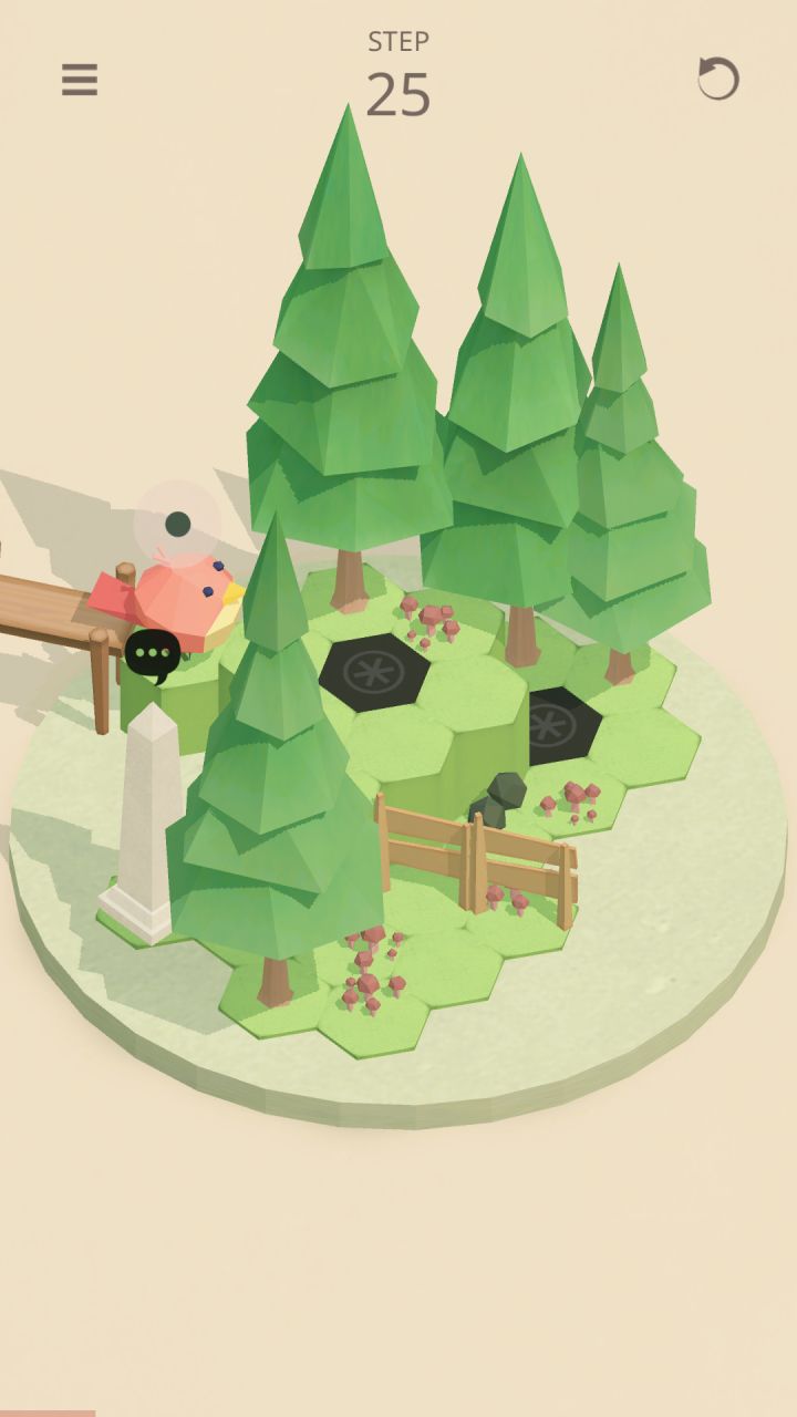开始进去本以为是很简单的,二十分钟就能通关的游戏,可是游戏里的成就和各种变形让我这个收集控瞬间爆炸。以下有剧透,想自己摸索的请不要看。上两张图为成就打卡,前面的5个比较简单。前三个连过几关就会出现。第四个第五个多刷新几次关卡也会有的。偏往死里去和拜托让我死:一关用掉所有步数多次,前者大概七八次,后者十几次吧,要有耐心。千钧一发:最后一步进入门里。感恩的熊:在森林-独木桥那关帮助小熊找