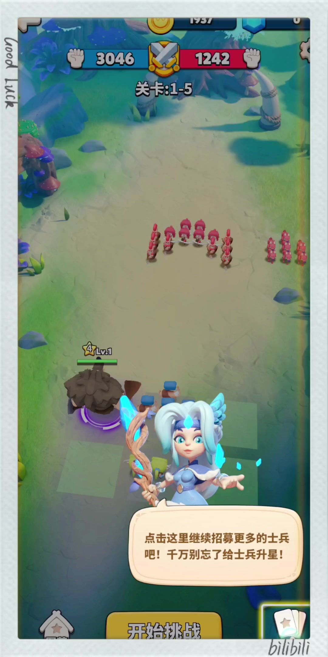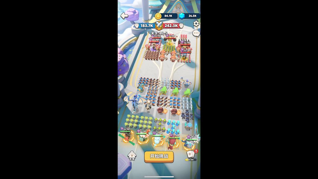 前一个帖子有介绍,这是10-5关卡的推图视频,180K战力推240K 推10-4的时候,猴哥在左后排1,第一局失败了,把猴哥换成了右后排2位置,通过了。 推10-5,就又换成了左后排1的位置,可以看到,整体推图还算稳定。 主要思路就是 1,让前排小兵吃技能吃伤害。 2,利用远程小兵堵住猴哥,一方面延缓猴哥走位输出,另一方面防止后排被偷袭。 3,雪女➕波塞冬的冰冻控制,中断地方的输出,给猴哥增加生存