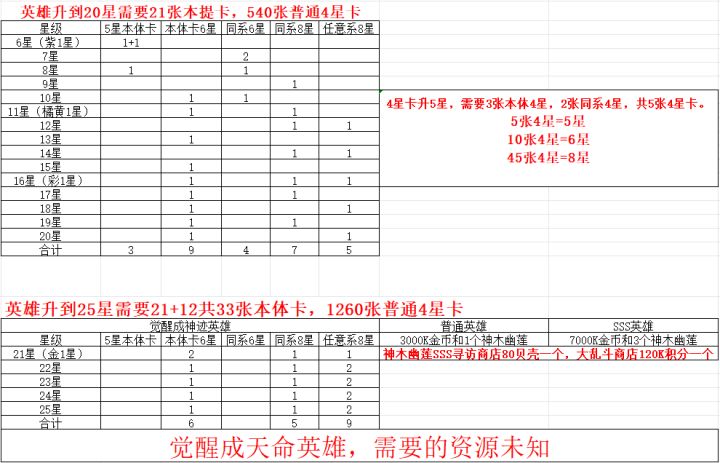 获得SSS级英雄途径,及各种商店1.氪金,各种活动礼包,SSS自选(无限时英雄),万能药剂2.周固定活动(宝物精华,活跃金币,淘金者手镐)可以换取万能药剂,SSS自选,红抽, 天命神器碎片等稀有资源,不够换取可以留着下次活动开始换取3.普通招募每周一次心愿,限时英雄有了一张本体卡也可以在普通招募里每周获得一张,心愿运气不好200抽也出了,不用特意去存普抽4.号角特选,普抽一次给一个号角,5