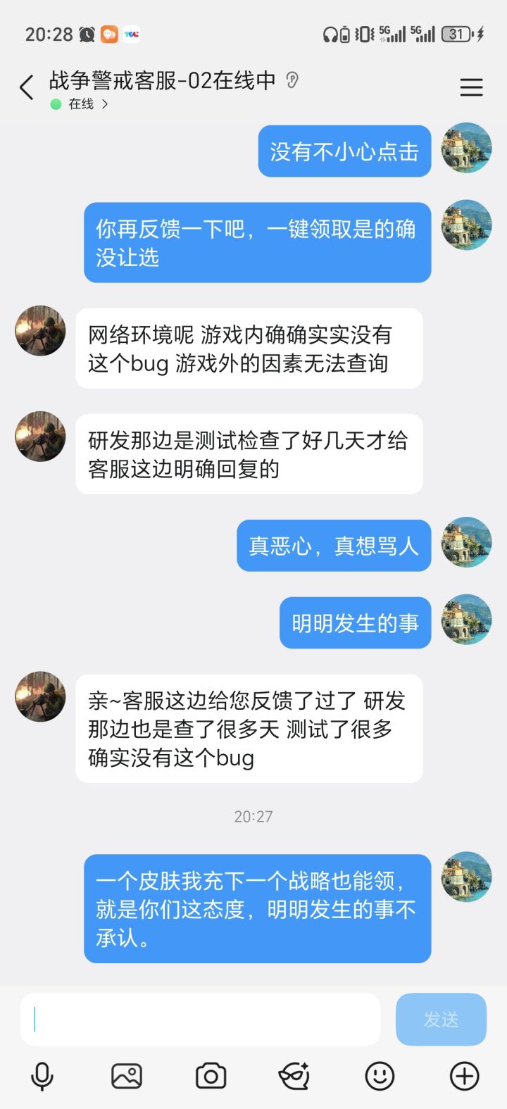 花钱充新人训练里的战略训练,点一键领取,涂装自选没让选就自己出了,明明发生的事反应到客服一句没有这个bug了事。有没有发生类似情况的同志们。