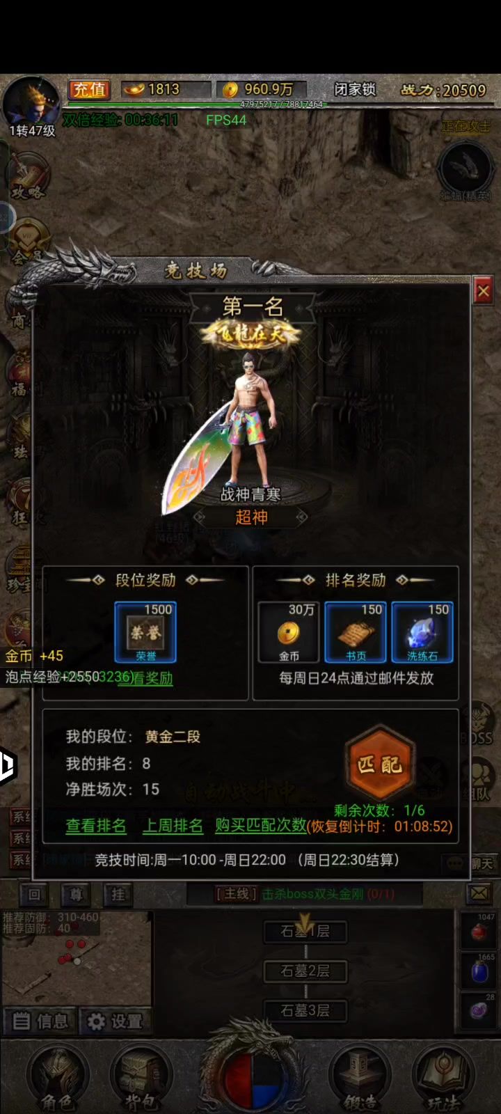 参与竞技场挑战领元宝