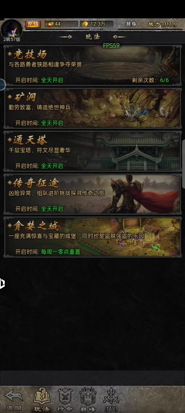 参与竞技场挑战领元宝