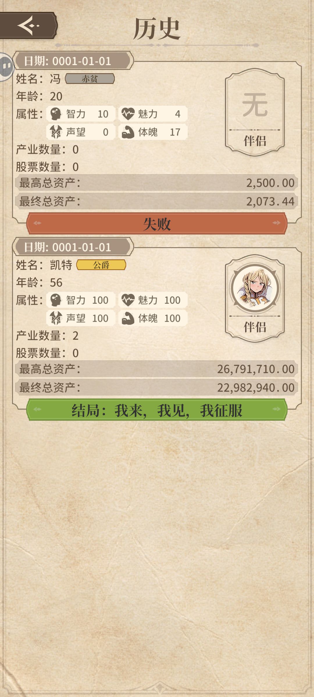 第一阶段 到20岁 每天去黑市学习,剩下体力随便打点工,回合末的四选一选社交的那个(拿钱),到20岁付3k就行了 第二阶段 跑商 简单说一下注意点 1.这个阶段回合没结束可以退游戏重开,遇到跑亏的直接重开 2.马车优先点体力和库存,运费纯粹零头 3.一般选择两地来回跑(我推荐中间的城和最下面的来回买卖香料和丝绸) 4.旅馆每回合3轮体力买满,在不影响本金的情况下买最贵的 5.本城市买的东西本回合是