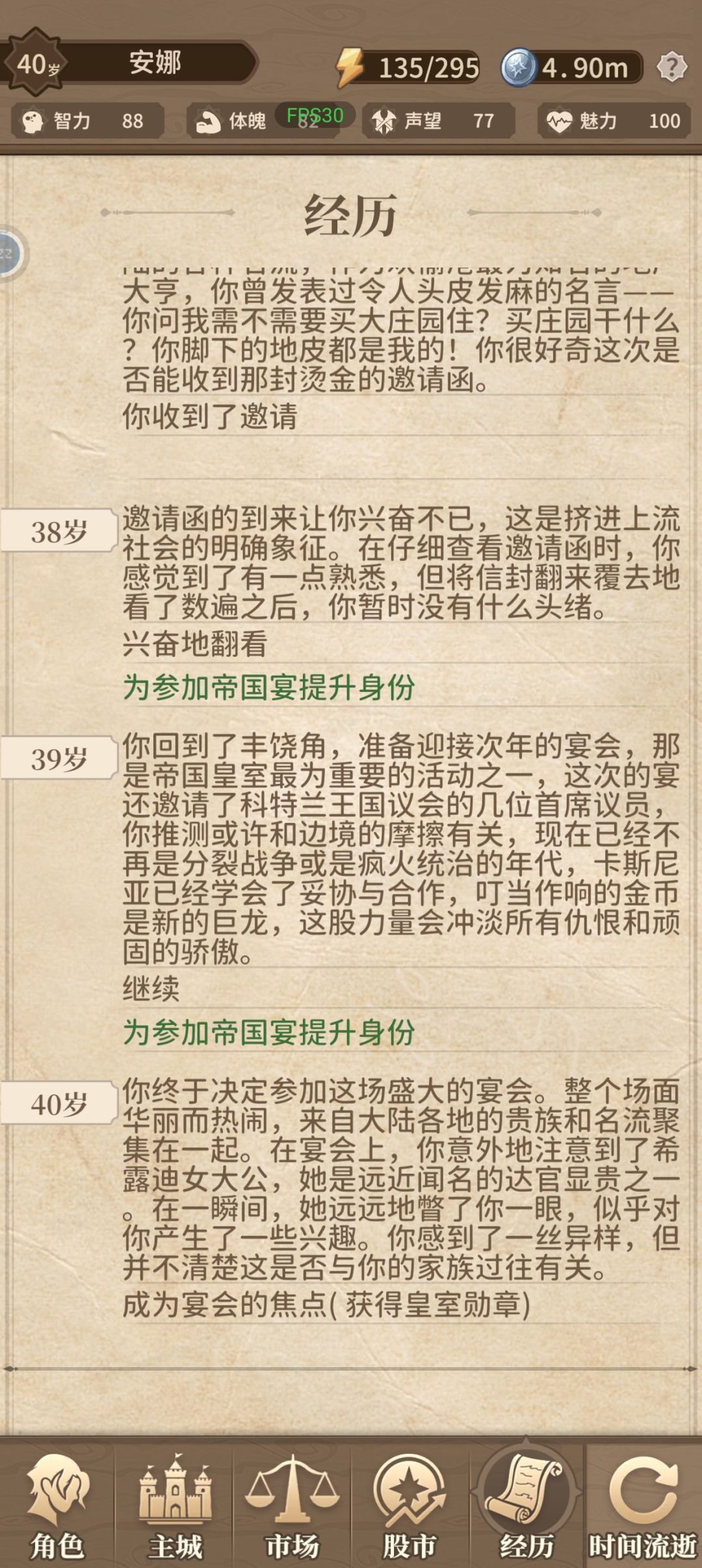 新年新记录📝 首先青年时期要☑️: □用能力证明自己【然后要在 30 还是 40 岁前总属性 40+】,后获得继承者之戒❗️ 最后一环 50 多岁了、 二选一选项,要☑️: (某个属性要够 50+才能选)交出 5m 【不然要达到 10m 喔!我认为枯燥堆💰很难】 [表情_开心]关于挚友: 所有 NPC达成挚友,大部分能给你圣物的,都能给你在退休前很好的加成,由于游戏 bug 未修复完善,只能看到#游戏种草计划