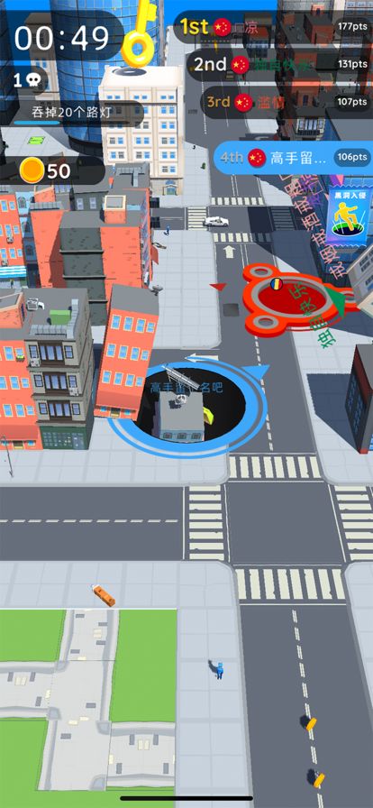 你能像黑洞王者一样移动黑洞,将建筑物吞入洞中吗?时钟在滴答作响,时间马上就要到了,你能成功吞掉它吗?