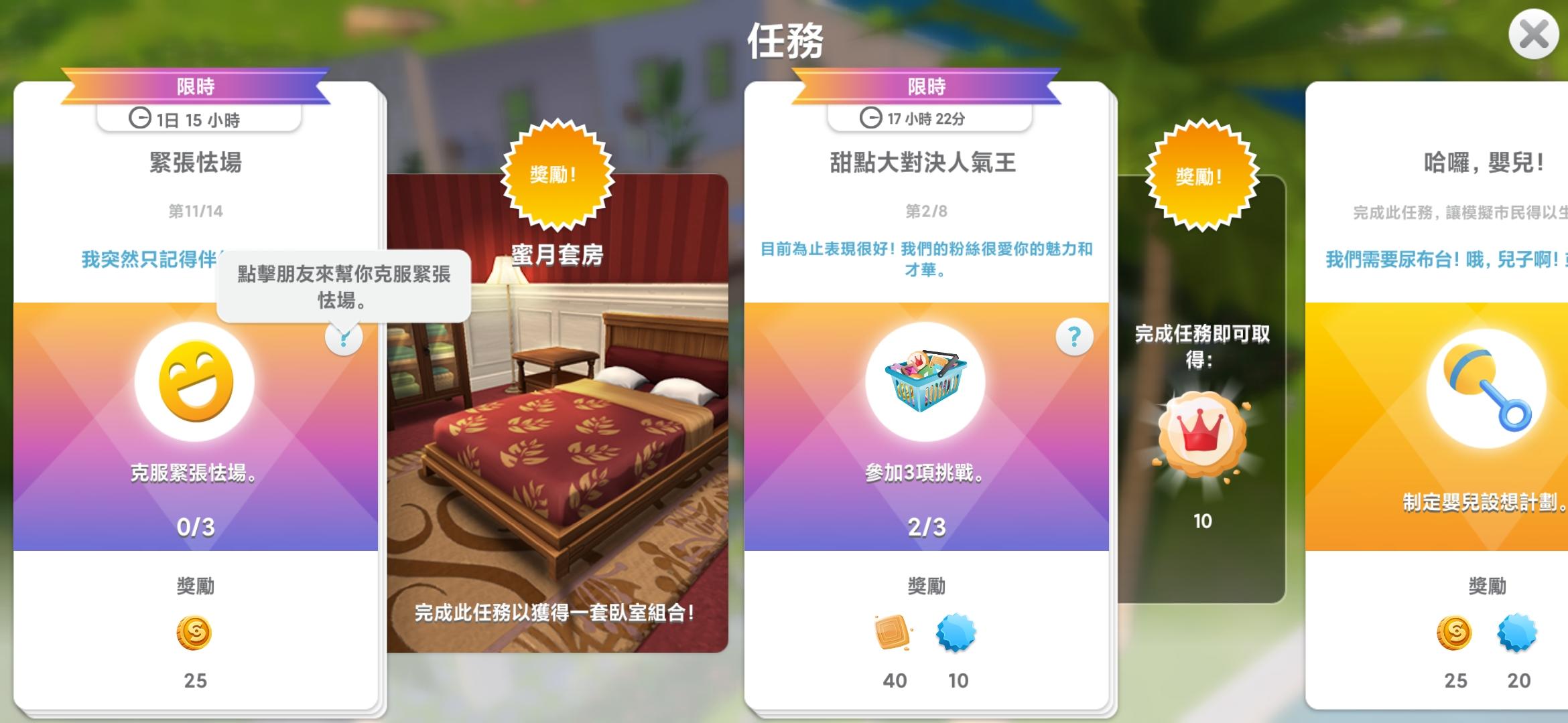 模拟人生移动版,中文译文是手机版(英文名 The Sims mobile)。本作是2017年5月上线的,也才不到4年,模拟人生移动版,本咸鱼断断续续玩了这几年的感觉就是,任务一个接着一个,自由度高、内容多、有点肝,不过肝下来的体验还是不错的。相比PC端的模拟人生,肯定差了点意思,不过还是不错的。手机版胜在可以随时随地玩一玩,乐一乐,比较方便,有兴趣的XD,都可以试试。= 中文和版本 =模