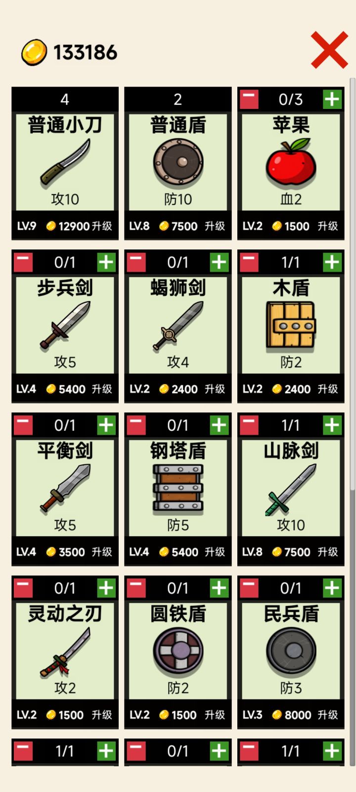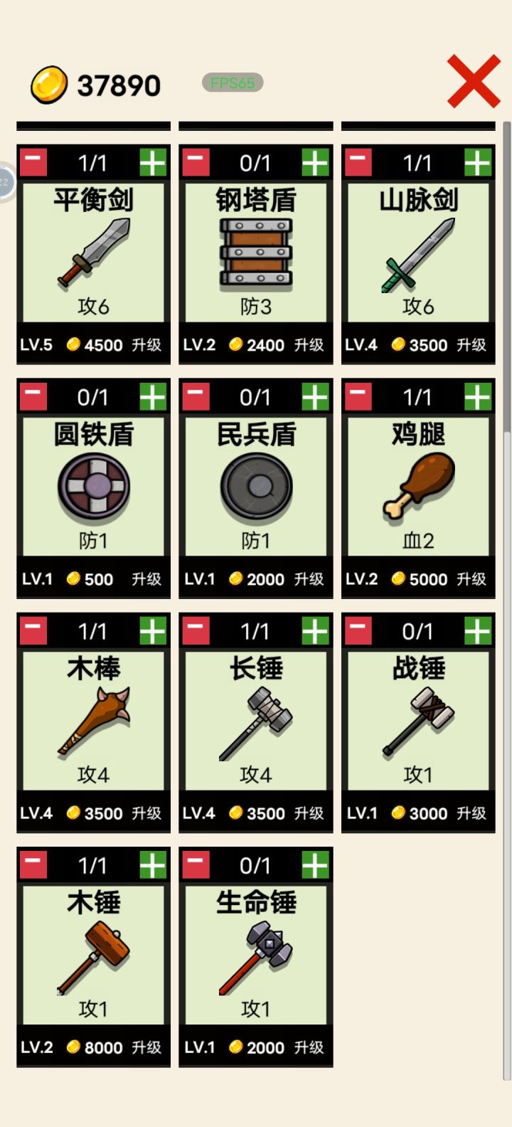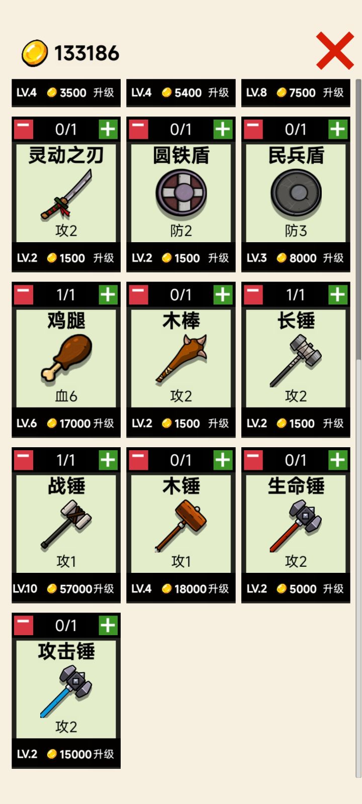 游戏是好游戏,策略性很强,就是金币获取太难,现在升一级抽卡或攻击要50000,靠刷关恐怕要刷好几个小时,游戏体验极差。后期关卡难度极高,不升级完全推不动图,强烈建议增加金币收入,哪怕加个日常刷金关卡也行。我的配装就是平衡、山脉、长锤,用双倍伤害打爆发,后期的关键怪多活一回合就打不过了。鸡腿、木锤用来平稳发育,每关最后留个怪负责回血,加血怪最佳,木锤收尾提高血量上限。即便已经绞尽脑汁,现在也推不动
