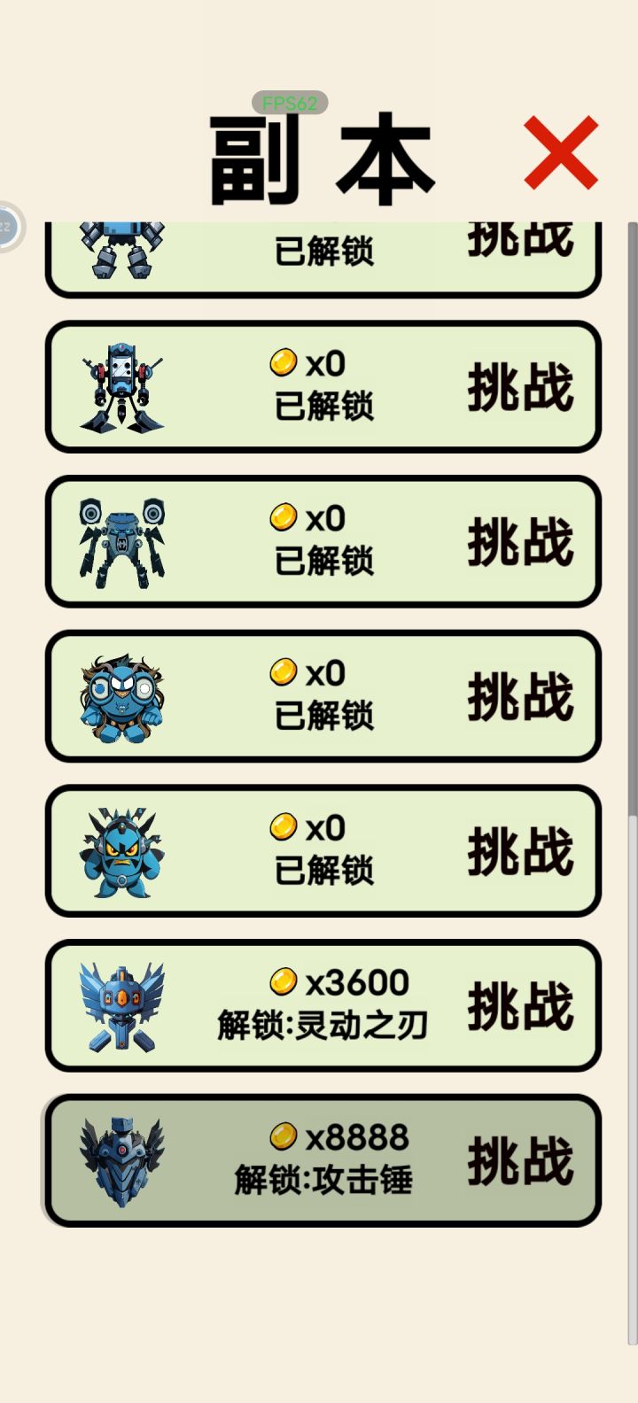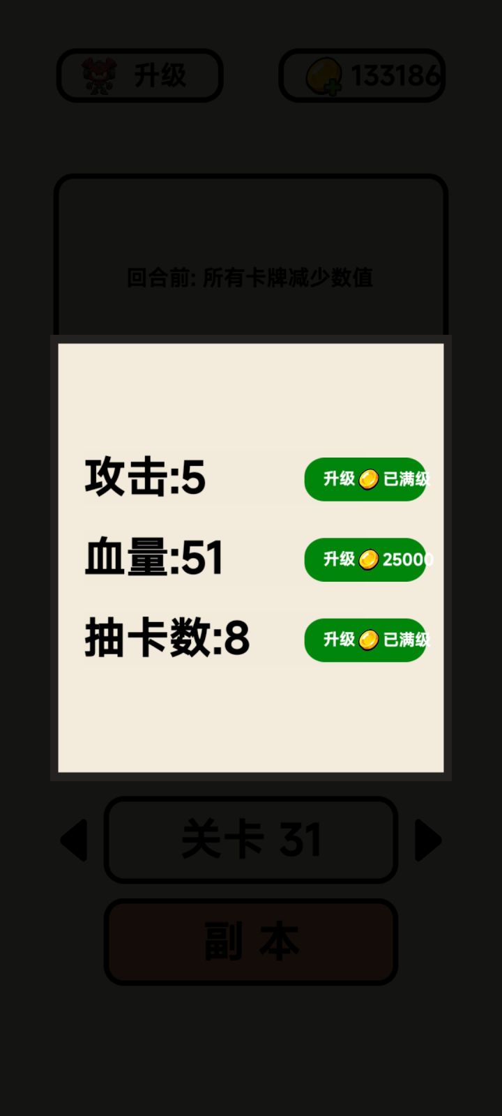 有啥不懂的可以问我玩到31过不去了,我就看了几天广告,堆金币过了31就能过副本攻击锤的,但是因为作者本来打算是之后的关卡没想好,所以31设置成是基本不可能过的,如图所示,我过31用的武器(可以低2级,鸡腿高点会更好)但基础血量至少得40以上,因为要抗住第2波三个回收反伤的变态,第三波是boss,没看出哪里削我数值了,只有5个数值怪13攻150血的。31过了会出来一堆bug,进去32没有怪点了