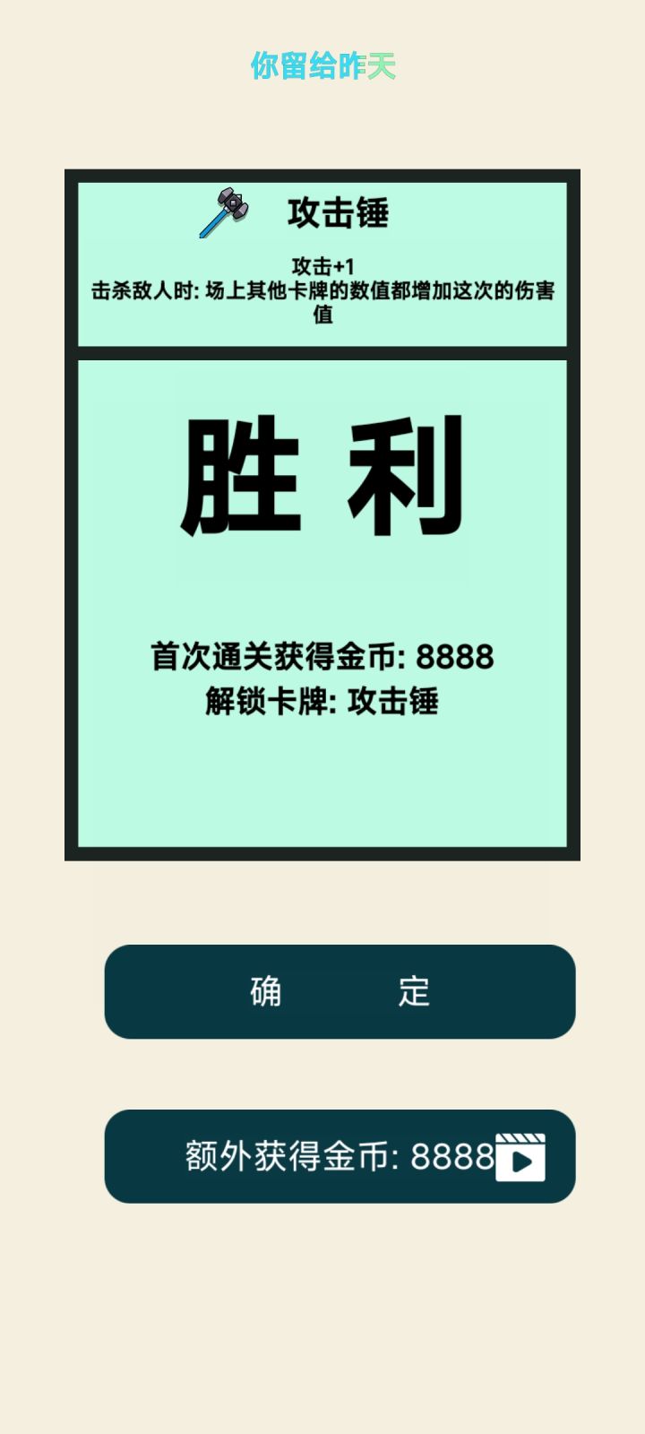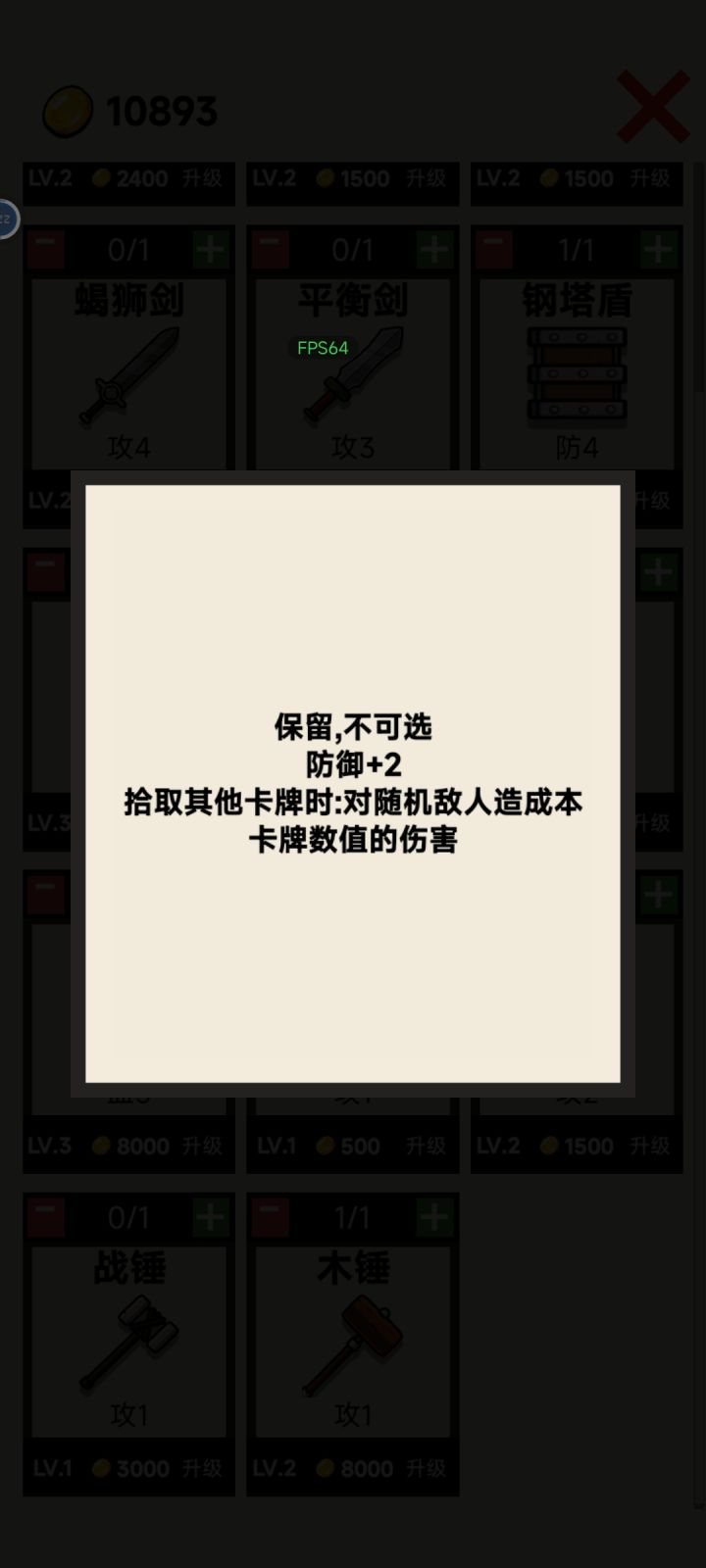 卡牌只有副本一个来源,打副本也比关卡有意思。后面无论是怪物还是卡牌都没什么心意。倒也没有刷金币的必要,因为拿到民兵盾的时候这游戏寿命就结束了(配合钢塔盾和鸡腿)