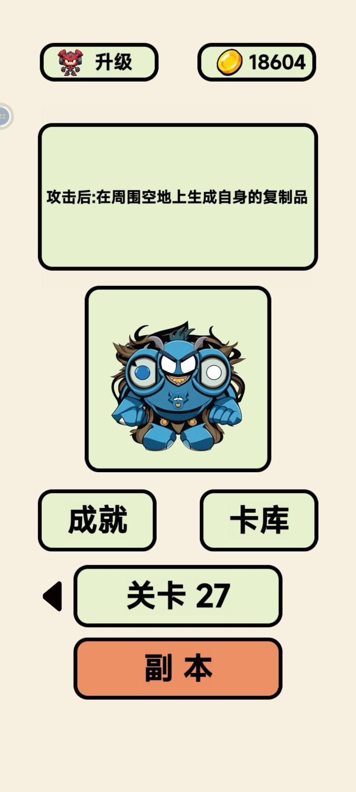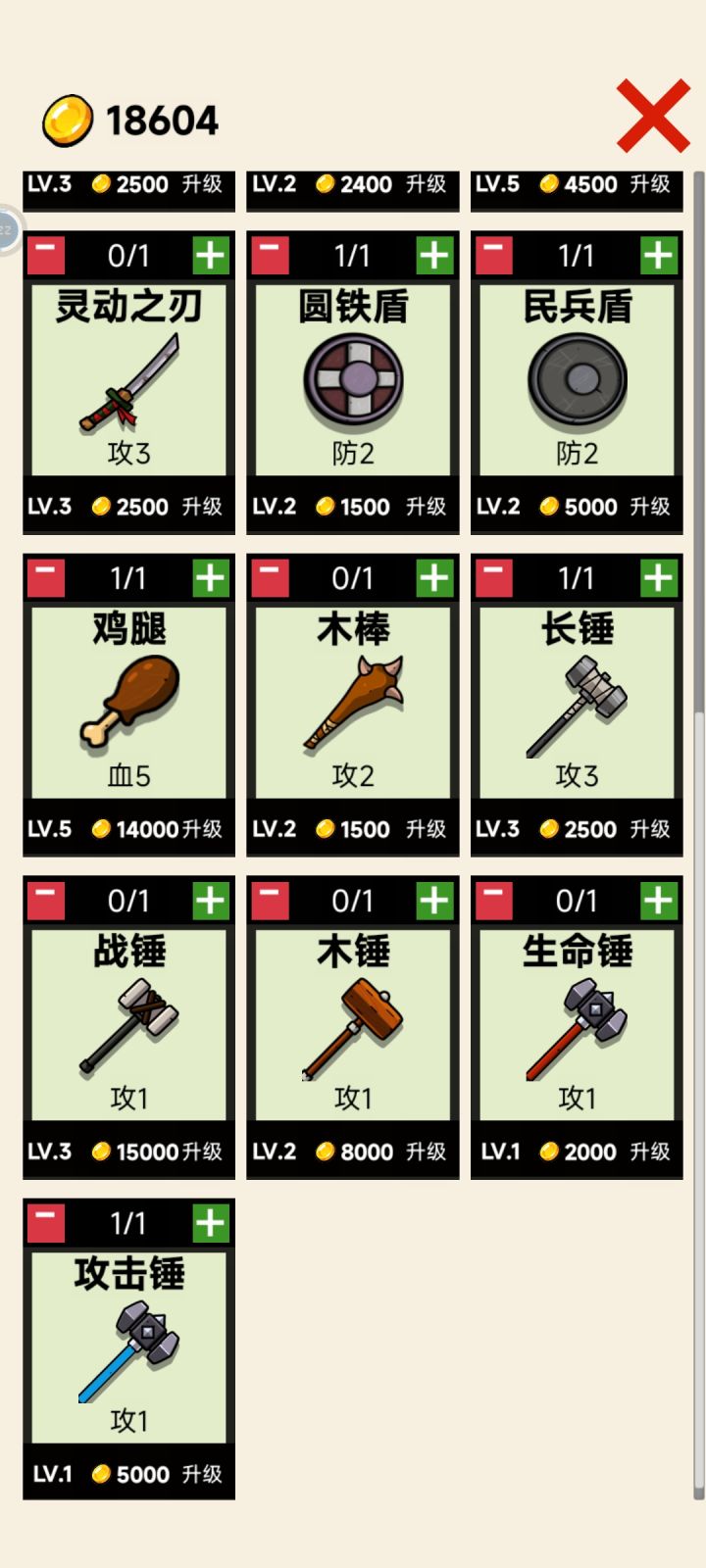 游戏是好游戏,策略性很强,就是金币获取太难,现在升一级抽卡或攻击要50000,靠刷关恐怕要刷好几个小时,游戏体验极差。后期关卡难度极高,不升级完全推不动图,强烈建议增加金币收入,哪怕加个日常刷金关卡也行。我的配装就是平衡、山脉、长锤,用双倍伤害打爆发,后期的关键怪多活一回合就打不过了。鸡腿、木锤用来平稳发育,每关最后留个怪负责回血,加血怪最佳,木锤收尾提高血量上限。即便已经绞尽脑汁,现在也推不动