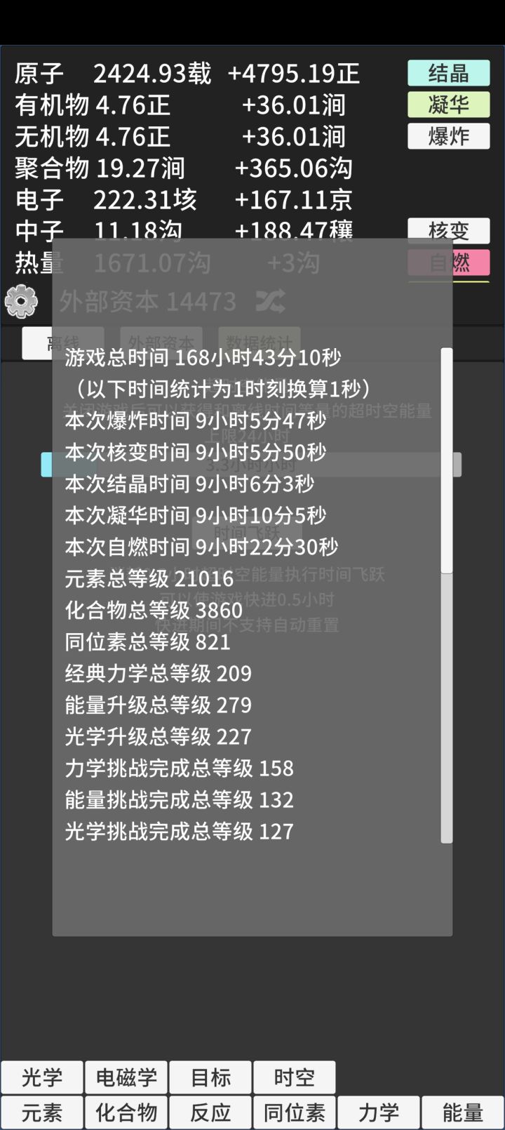 肝不了一点新科技对原子和电子没有加成,结论:此版本没有能卷的项目当前电子产量(6.17兆),温度(248.9K)
