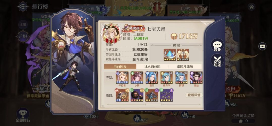 没有一千万战力的尘心玩家可以进来看看 这期的暗器不建议用暴雨梨花(只能打两个实在是一言难尽) 老规矩,尘心队有乌龟就打乌龟,没乌龟就随便放。 其他队就看情况吧,对面boss是单体的那种就用牛皋那一队去打。 有掏后排的就用马红俊那队去顶。 (一定要看我主暗器用的啥,全靠暗器打伤害。我这练度算一般般吧,其他0氪应该都比我强,我能过,你们一定也可以的)#斗罗大陆逆转时空攻略
