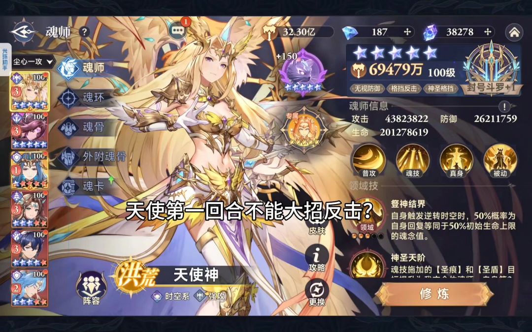 原本天使只要有真身触发了格挡就能大招反击,但因为bug的存在,要想天使在第一回合就能反击的条件多了一个变成三个 1:有真身 2:轮到天使行动回合时天使释放出了基础普攻(就是可以接专属武魂技的那个普攻) 3:队友或自己触发格挡 (详细情况都在视频里) 要想天使第一回合打反击的推荐方案 1:带满20红条的地穴魔珠,天使放前排一号位 优点是不怕控有真身就能反击,不死就能打满输出 缺点是很脆,容易被打掉点