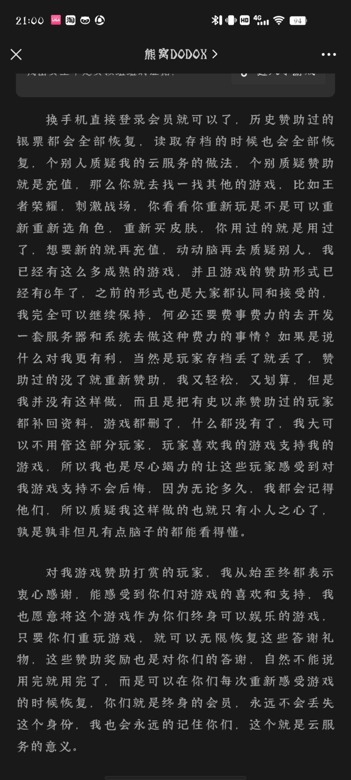 这作者就这样,动不动有人喷他,他就得在微信上说,这次节日礼包没有啦,有人骂他了啊一个人喷他,全部人一起跟着他受气,你们还得帮着他喷那个人,不然你们就是不支持他,随便一个陌生人骂他,所有支持他游戏的都得跟着受罪
