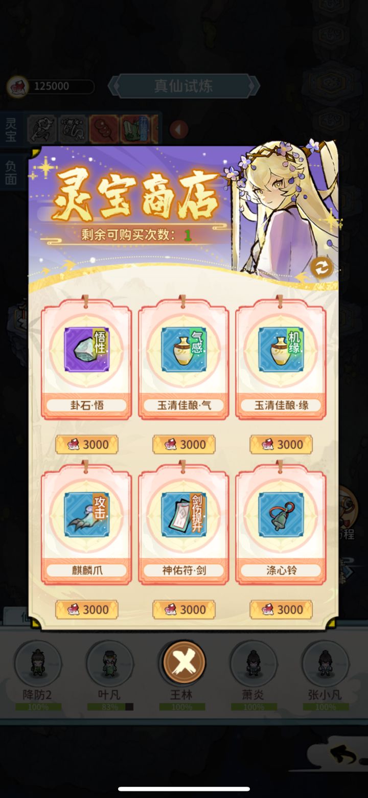 接触到真仙其实已经进入后期了(目前是这样)红色伙伴目前只有张小凡和叶凡值得冲 其他都是添头试炼一次不团灭可到大圆满 大圆满的关键在于伙伴 “张小凡”必须六星 (效果看图123)10万副本币从此商店随便买 但是商店进一次只能买三件货物建议买增加队伍攻击防御免伤增伤之类(一种纯15%另一种消耗副本币加成)特(可)别(有)点(可)的(无)就是双生铃 血玫 (越早有效果越好,血玫商店1次购买机