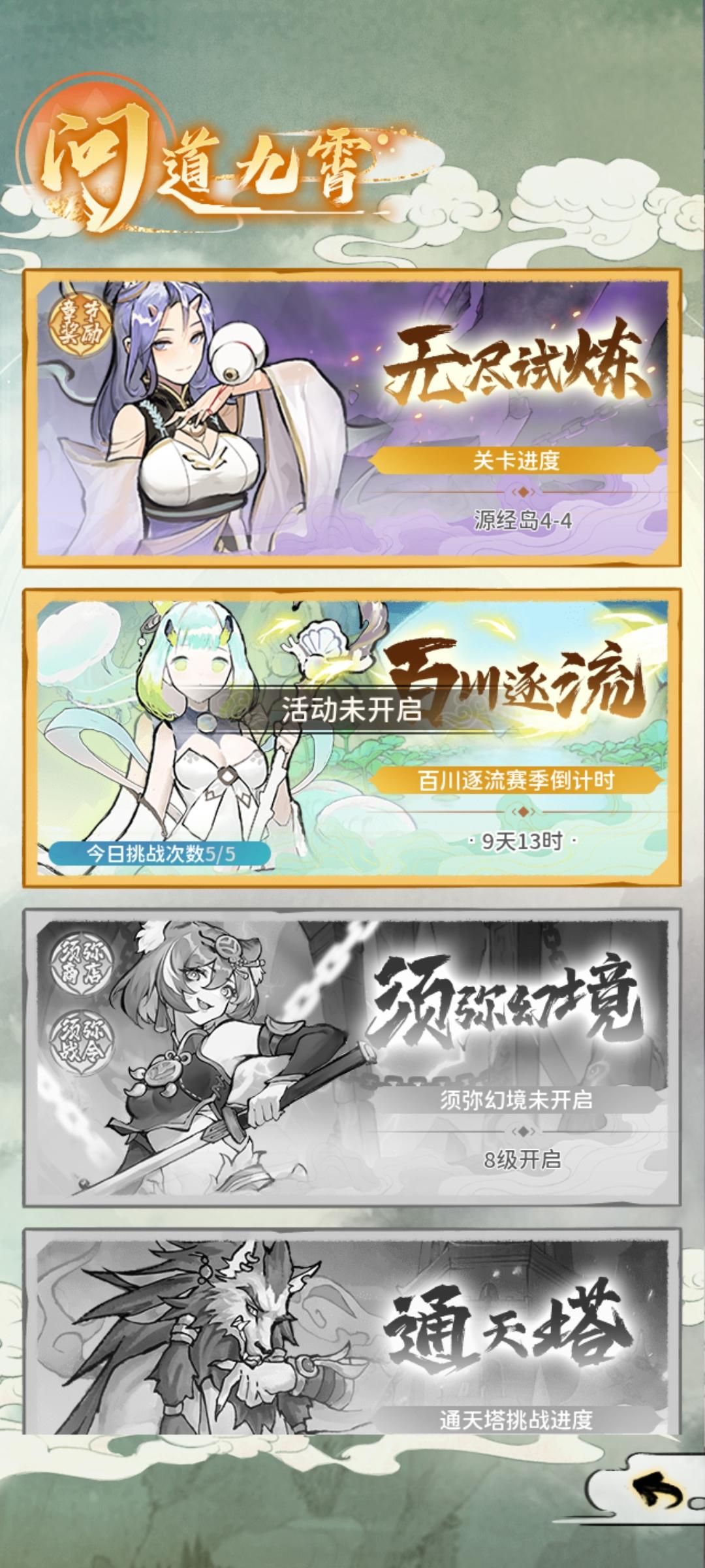 七级升八级有个任务就是打一次百川逐流,可我从昨天下午开始就一直显示活动未开启这是bug吗???搞得我一直卡在七级好难受大佬救救我