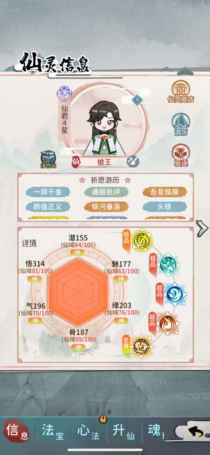 #新手攻略 萌新入坑重点汇总1.潜力决定可以游历的时间和仙灵的境界,每个境界都有一个潜力临界值,当突破时仙灵潜力大于临界值时可以多次突破且一次比一次成功率高,但只有第一次突破就成功有加额外属性,反之则只加相对于第一次突破就成功加的一半声望,所以当突破成功率没有100%时最好用渡劫丹2.仙晶最好是全部用来抽人物,每抽一次加一点积分,满100点可自选红色伙伴,优先选择叶凡3.商城广告必看,除了