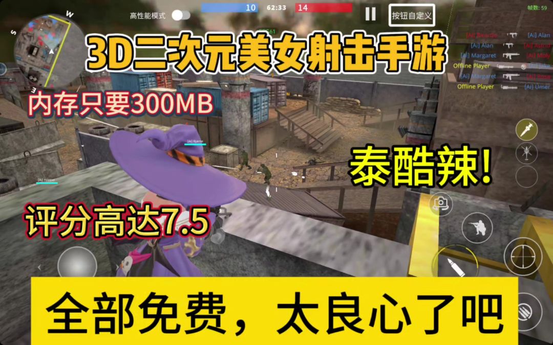 内存300多MB的3D射击手游,武器角色全部免费,泰裤辣。